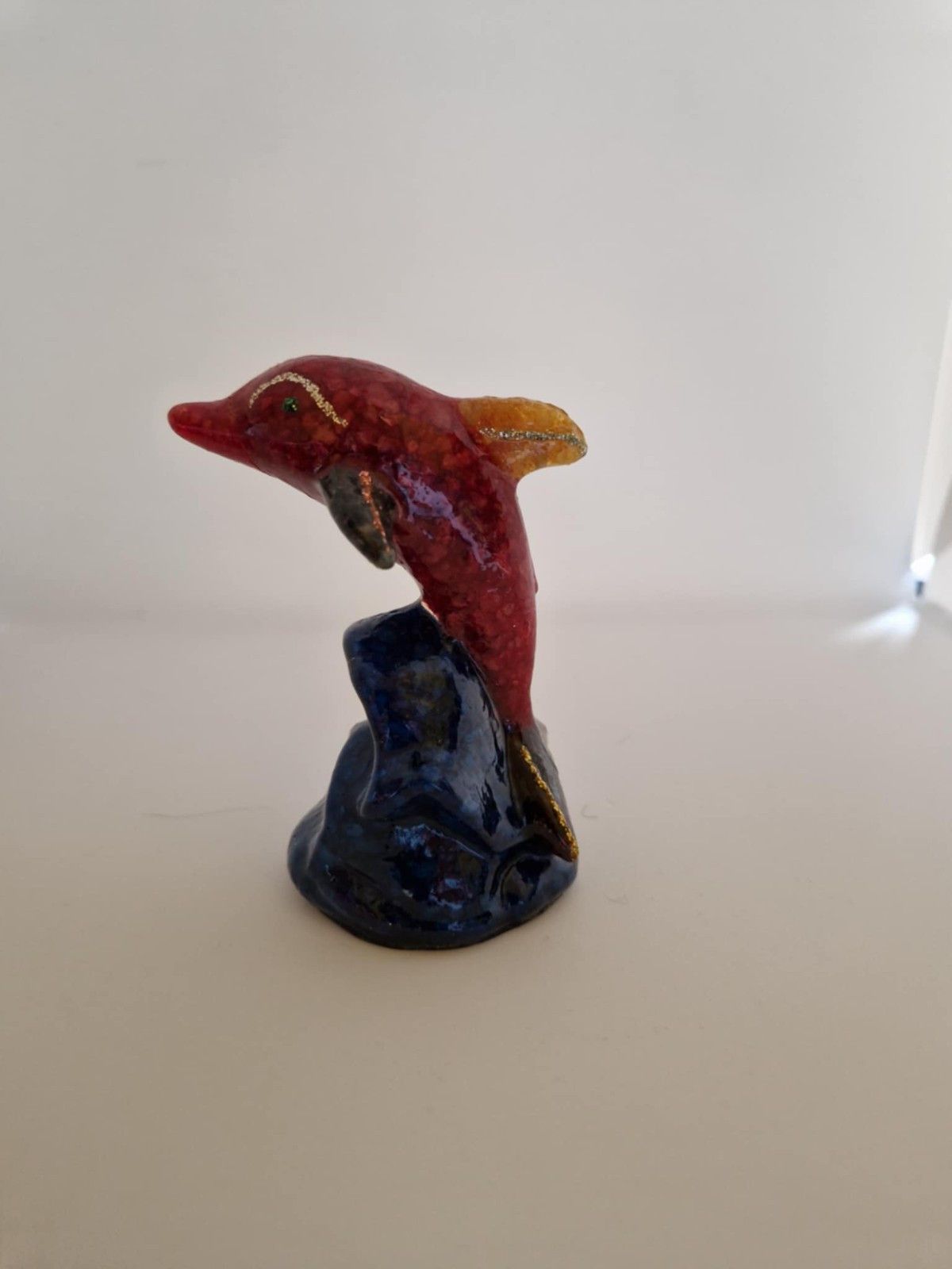 Natürlicher großer Edelstein Rohsteine Delfin Statue mit ca. 240 Gramm entspricht 1200 Carat Alter des Delfines ist ca. 30 Jahre Maße: ca. 6 cm breit und die länge ist ca. 12 cm Hergestellt aus natürlichen Multicoloren Rohsteinen (Rubine und Saphire und einiges mehr) Herkunft: Thailand Kleine Farbab... Mehr