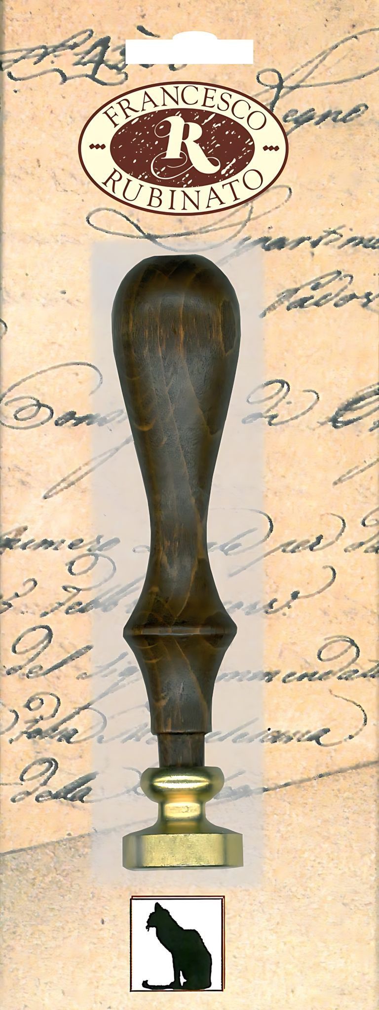 Rubinato Messingsiegel mit Holzgriff Katze seitlich Ø20 mm SB-Verpackung