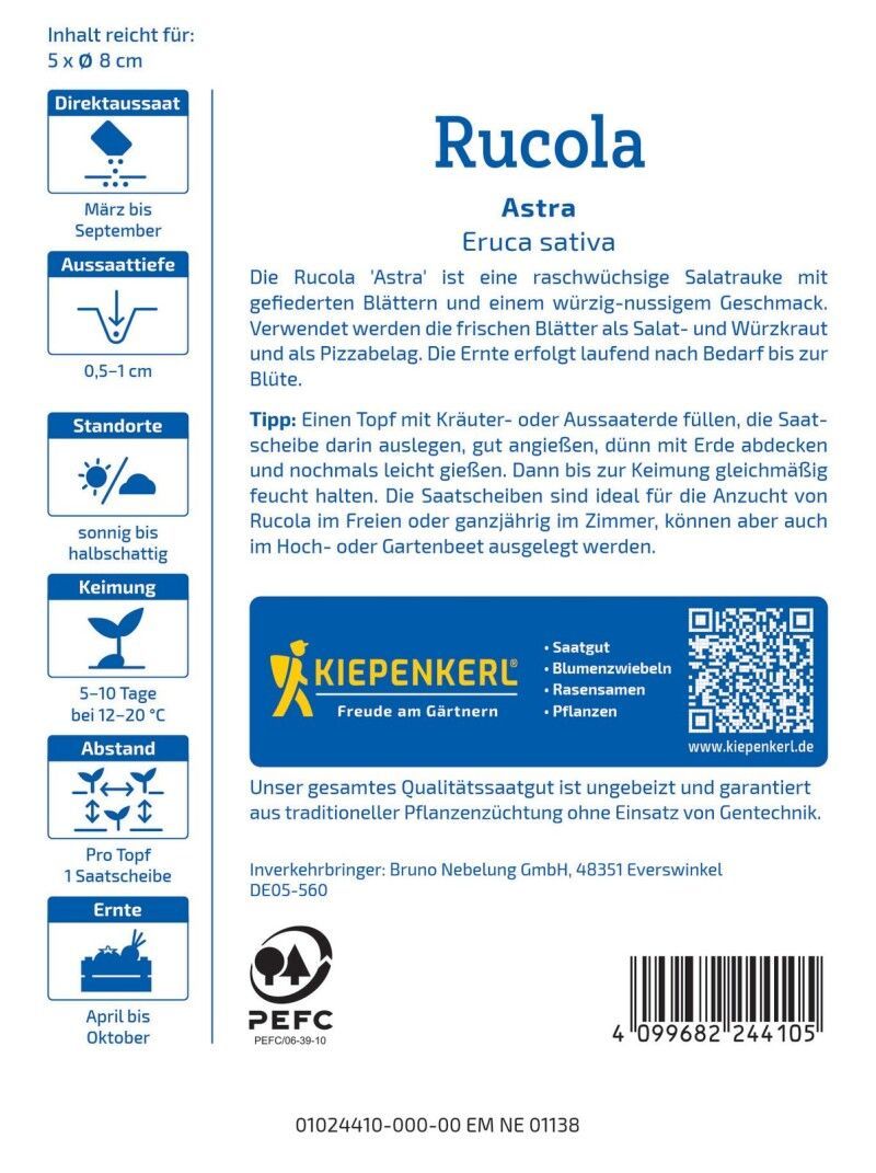 Kiepenkerl Rucola Astra, Saatscheibe, Salatrauke - raschwüchsiges Salat- u. Würzkraut,