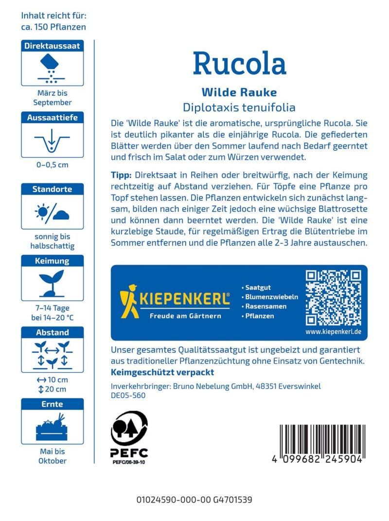 Kiepenkerl Rucola Wilde Rauke, Würz- u. Salatkraut - Beet, Hochbeet u. Topf - mehrjährig