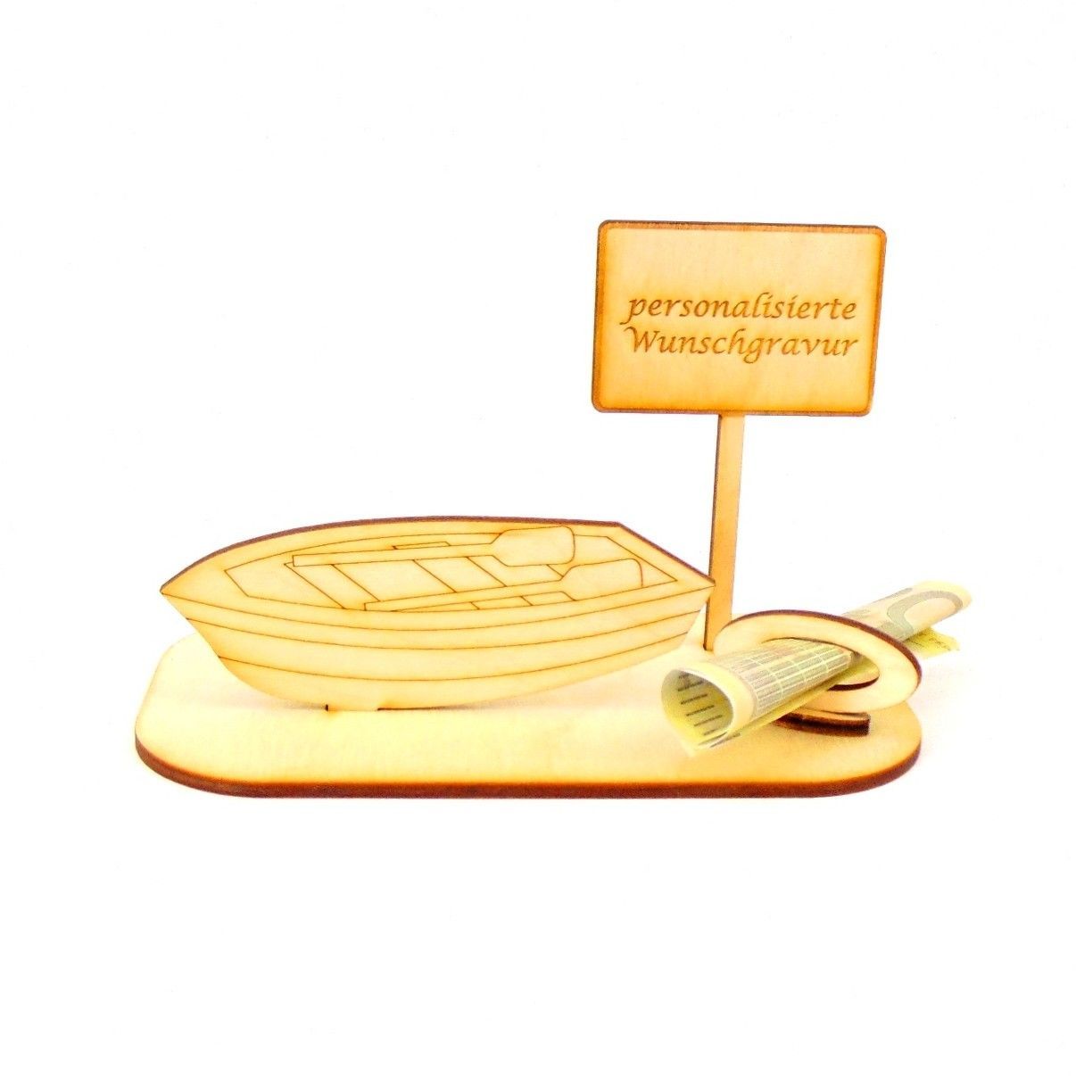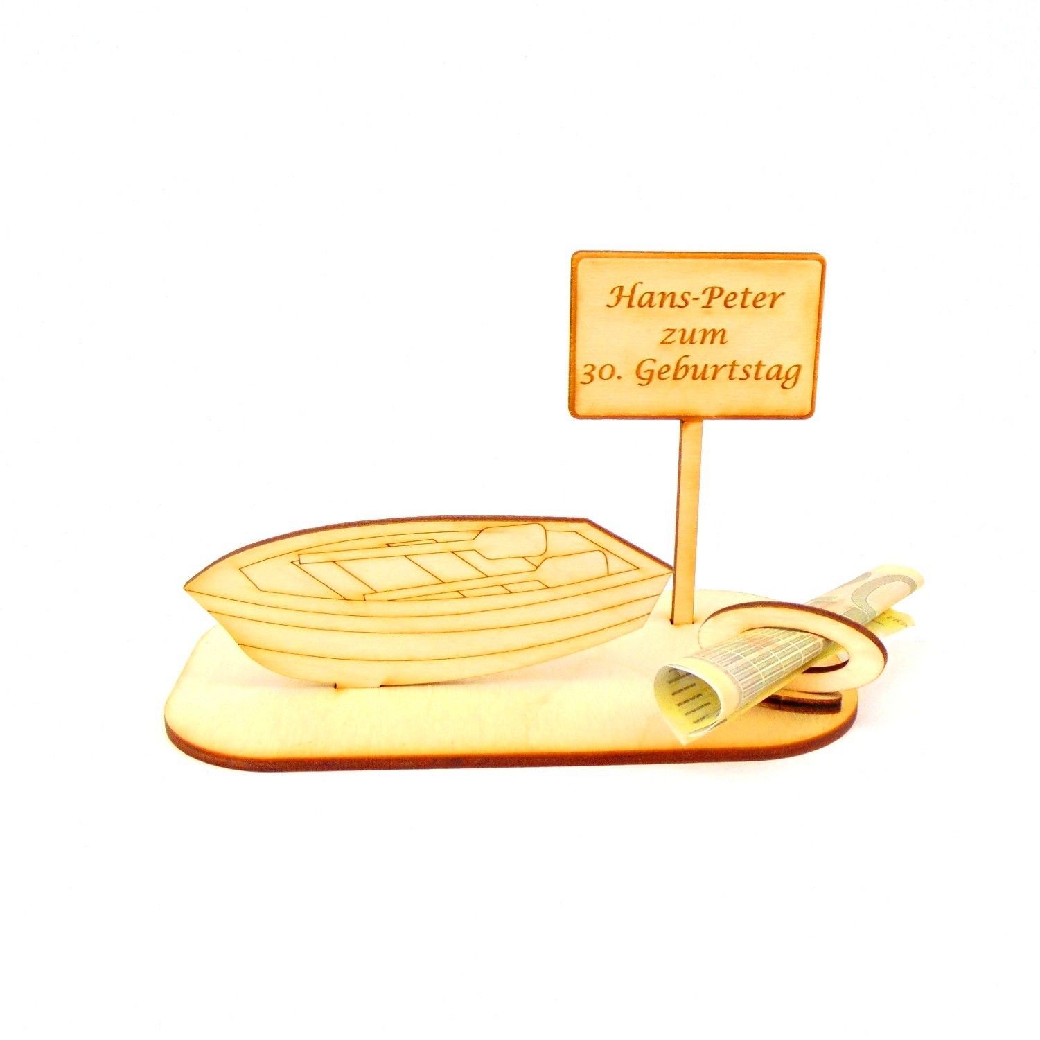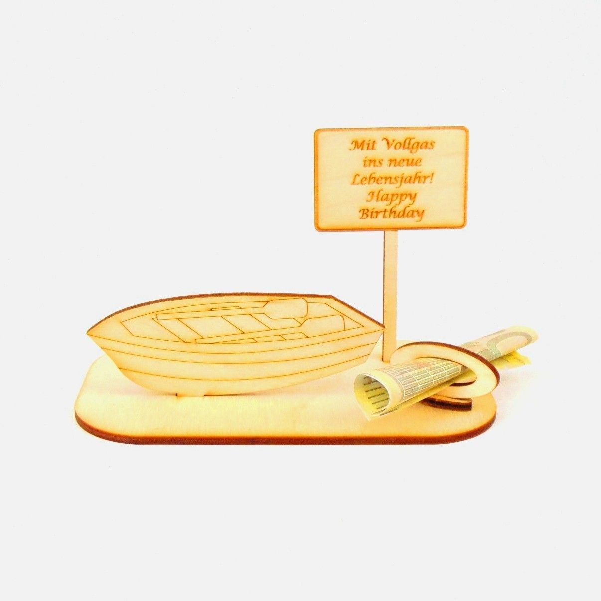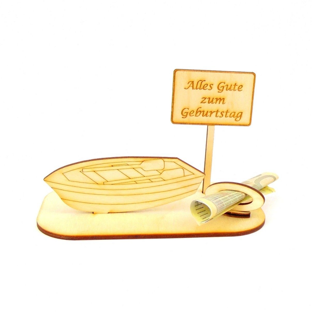 Ruderboot Geld und/ oder Gutschein Geschenk aus Holz "Geburtstag" Personalisiert-K03-