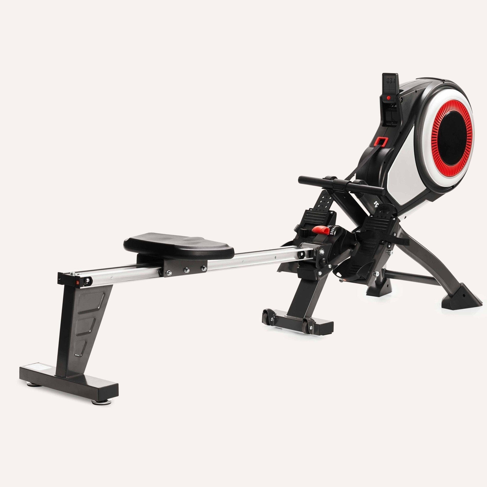 SportPlus Rudergerät mit Luftwiderstand | klappbar | 8 Widerstandsstufen | schwarz/rot