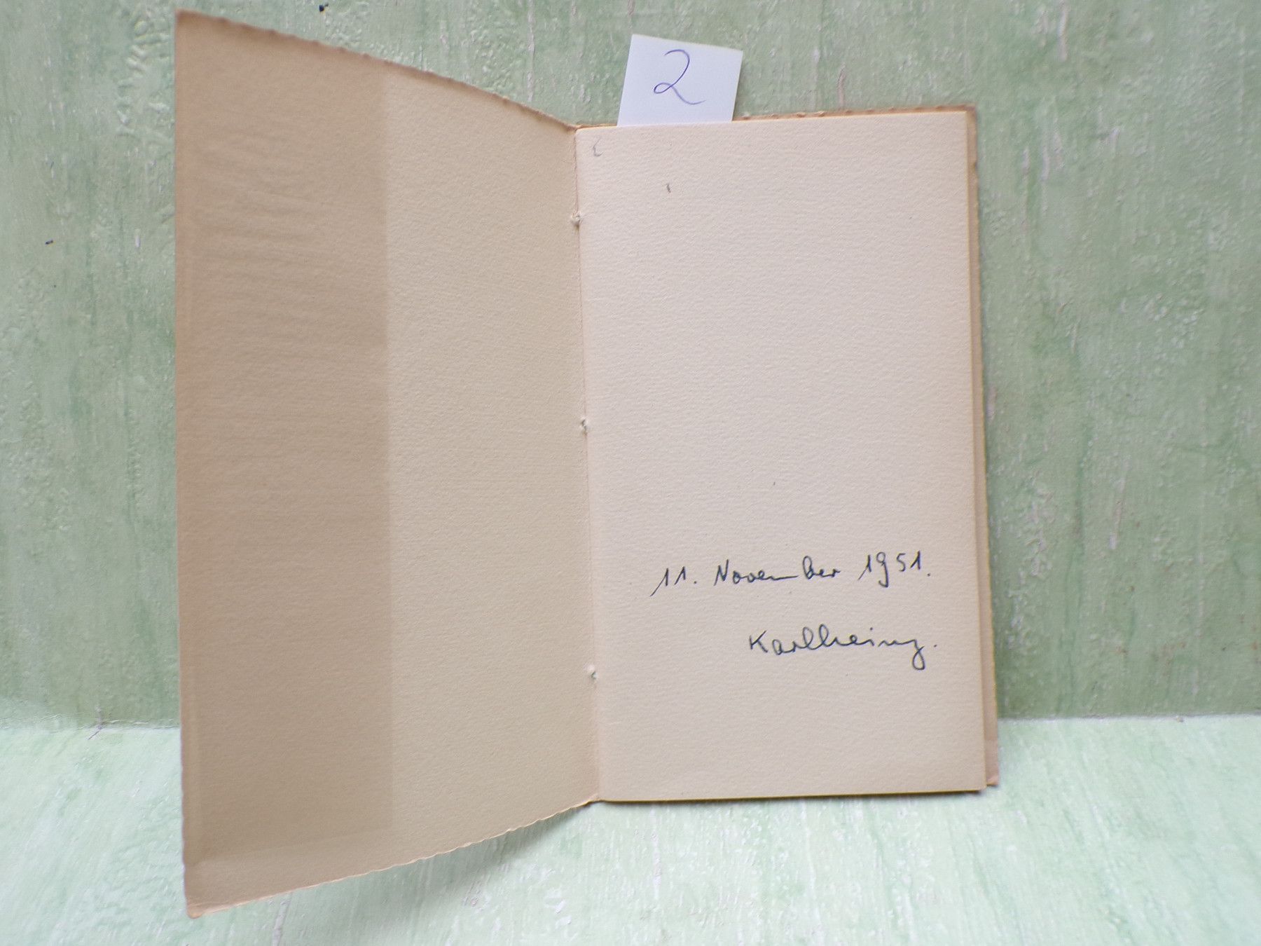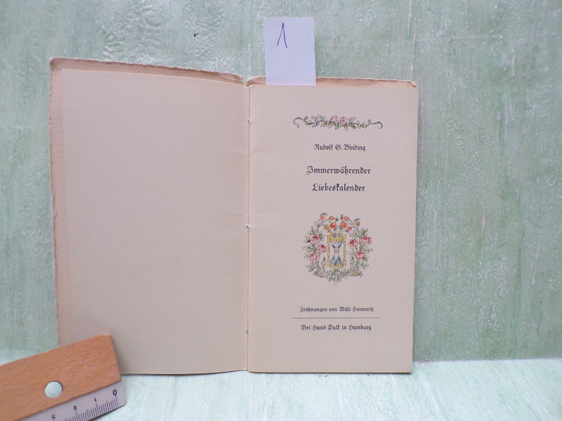 Jugend- & Kinderbücher ... Erinnerungen ..... . Auswahl . Rudolf G. Binding Immerwährender Liebeskalender Zeichnungen von Willi Harwerth Bei Hans Dulk in Hamburg . 50er Jahre Pappe hochwertige Papierseiten , Kordelbindung . Auswahl zu (1) : Kordelbindung defekt , sonst gut gut+ zu (2) : mit klar