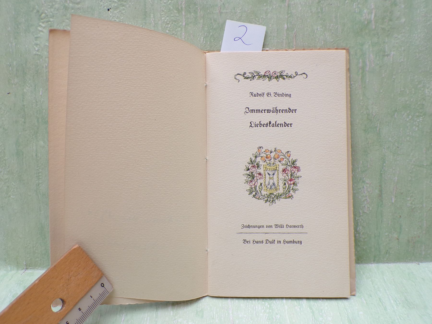Rudolf Binding Immerwährender Liebeskalender Willi Harwerth Hans Dulk Sütterlin