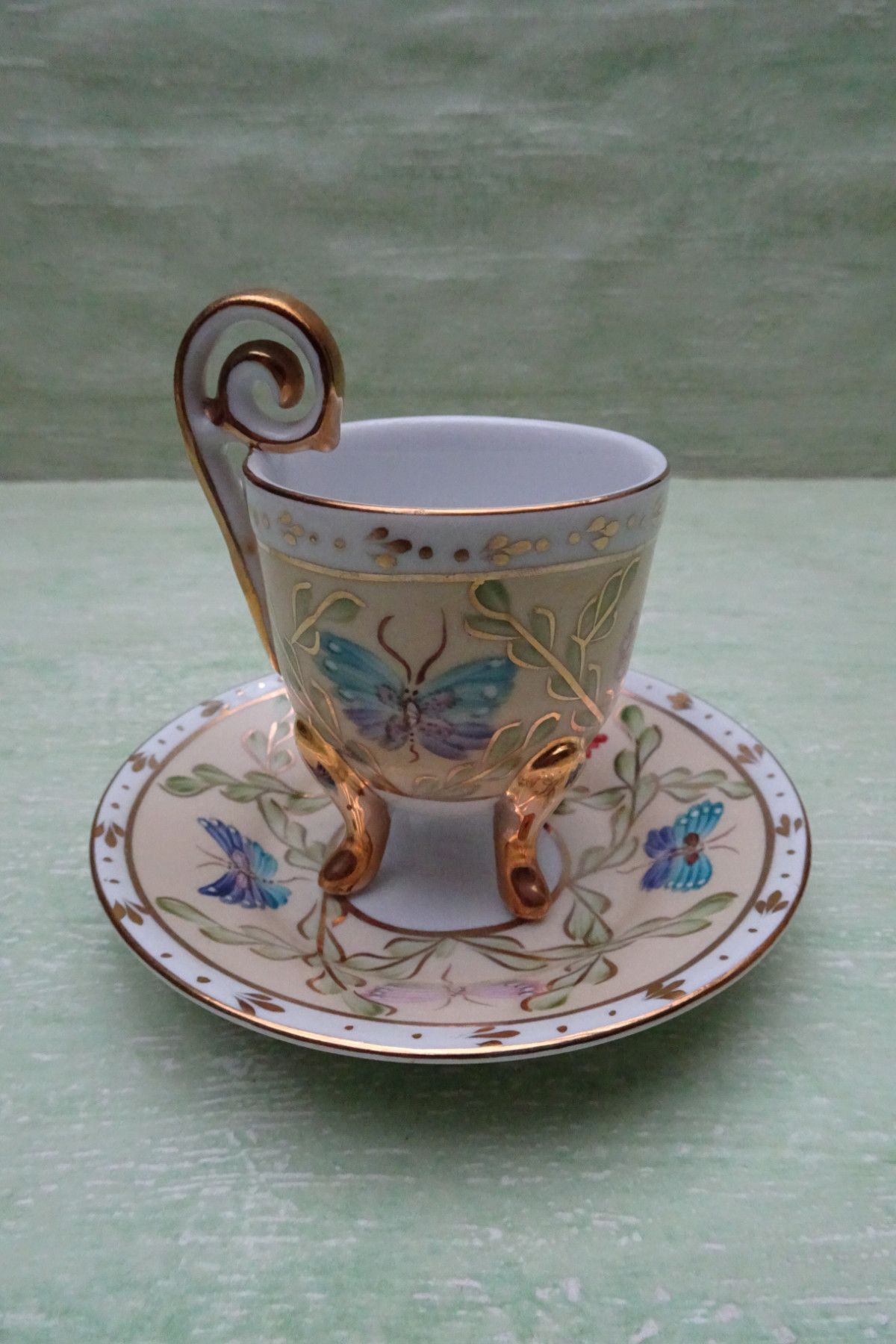 Rudolf Kämmner Volkstedt Thüringen Mokka- Espresso Tasse & Unterteller Schmetterlinge