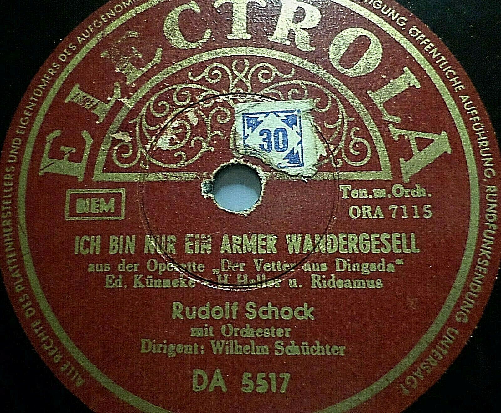 RUDOLF SCHOCK "Der Lenz / Ich bin nur ein armer Wandergesell" Electrola 78rpm