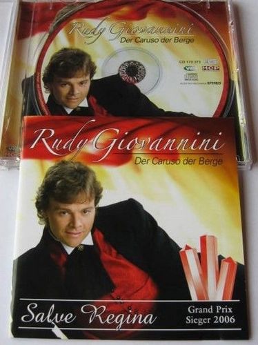 Rudy Giovannini Der Caruso der Berge CD Salve Regina 01. Valencia 02. Salve Regina (Duett mit Belsy) 03. Tarantella Culinaria 04. Wie der Tanz einer Rose 05. Silberfäden 06. La Montanara 07. Ponte di Rialto 08. Spanish Eyes 09. Annalisa 10. Lilli Marleen 11. Die Liebe lebt 12. Der schönste Tag im Le