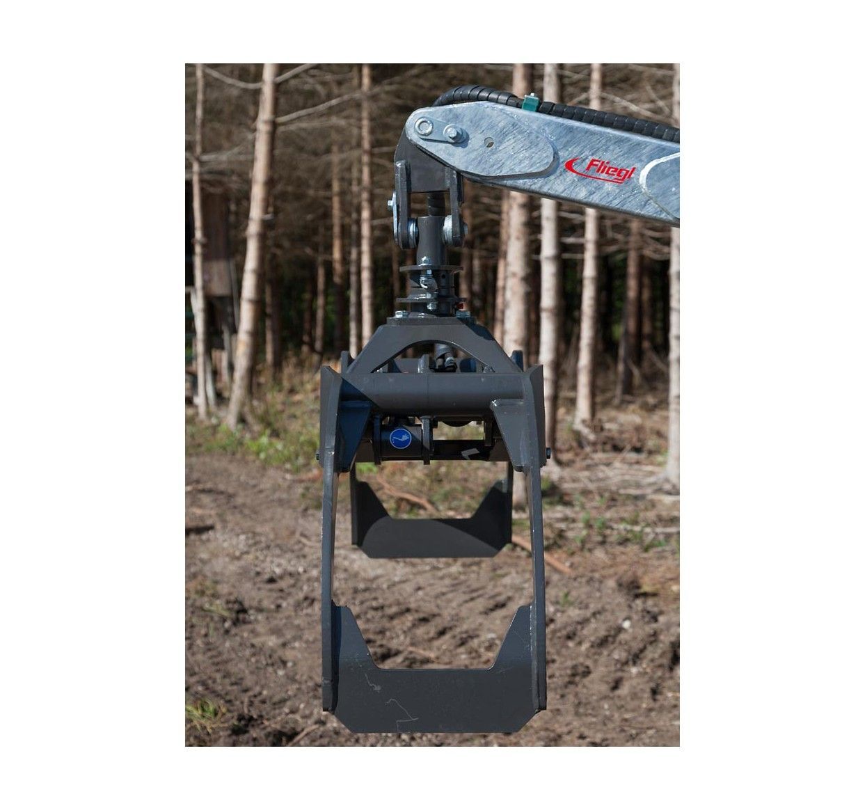 Rückezange hydraulisch Komplett mit Hydraulikanschlüssen und Dreipunktaufnahme Kat. II Technische Details: Schenkelbreite: 400 mm Wangen aus HB 400 Stahl Öffnungsweite: engster Durchschitt: ca. 119 mm, größter Durchschitt: ca. 1860 mm Lackierte, massive und stabile Ausführung Schwenkbereich 90° link