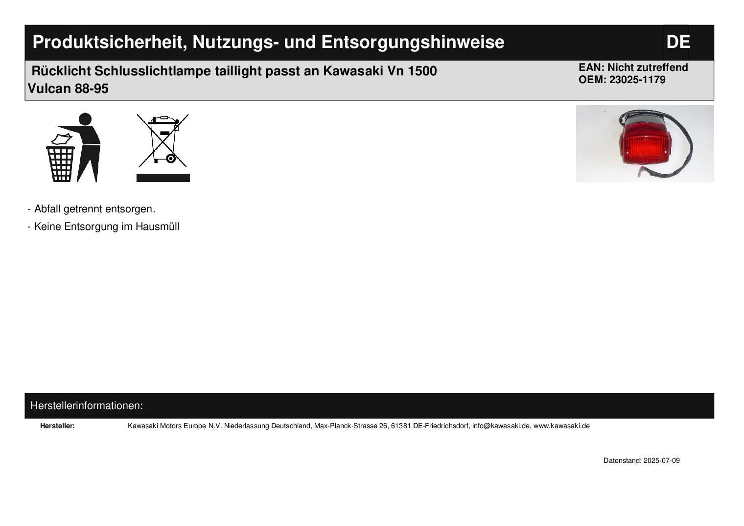 Rücklicht Schlusslichtlampe taillight passt an Kawasaki Vn 1500 Vulcan 88-95