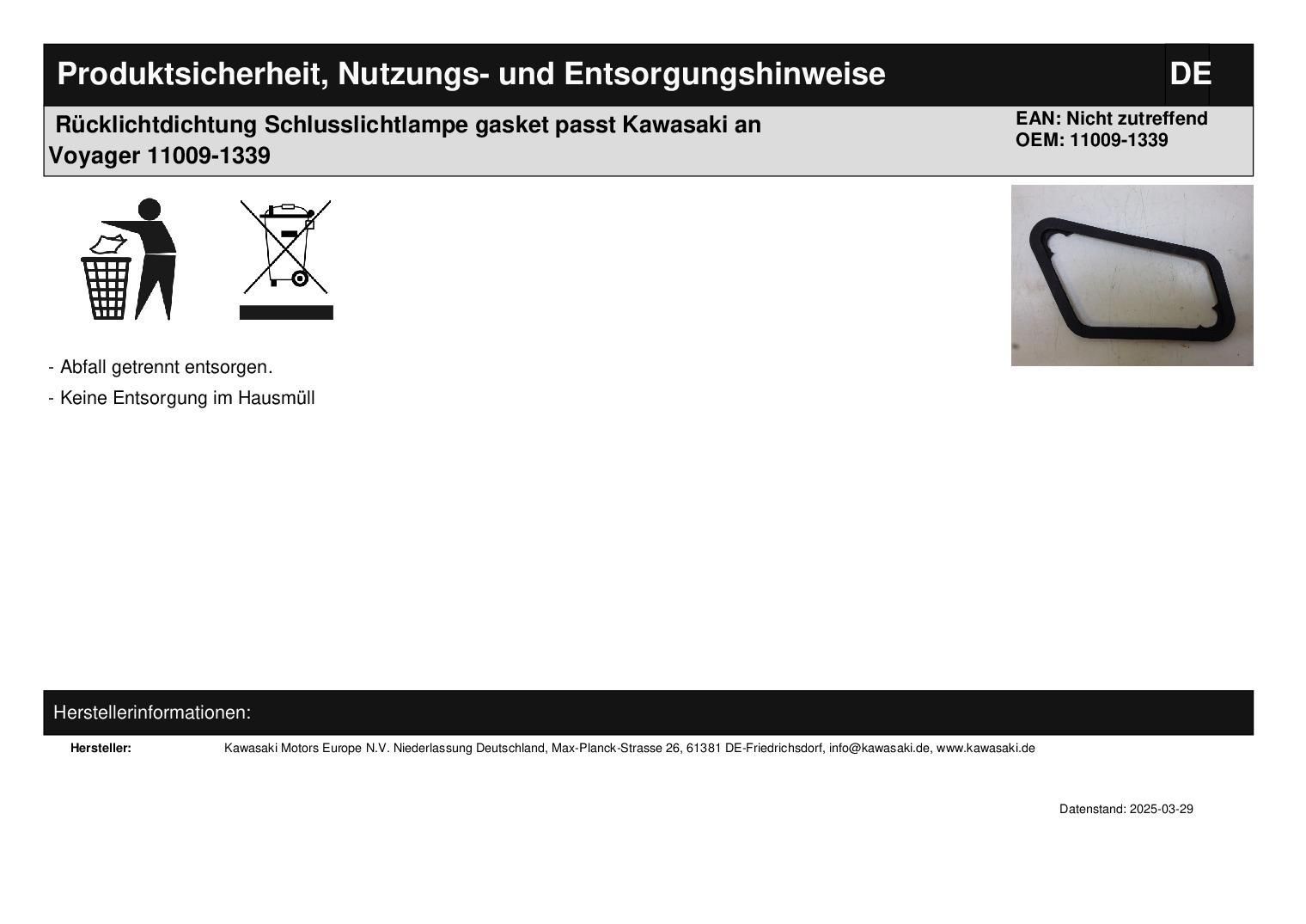 Rücklichtdichtung Schlusslichtlampe gasket passt Kawasaki an Voyager 11009-1339