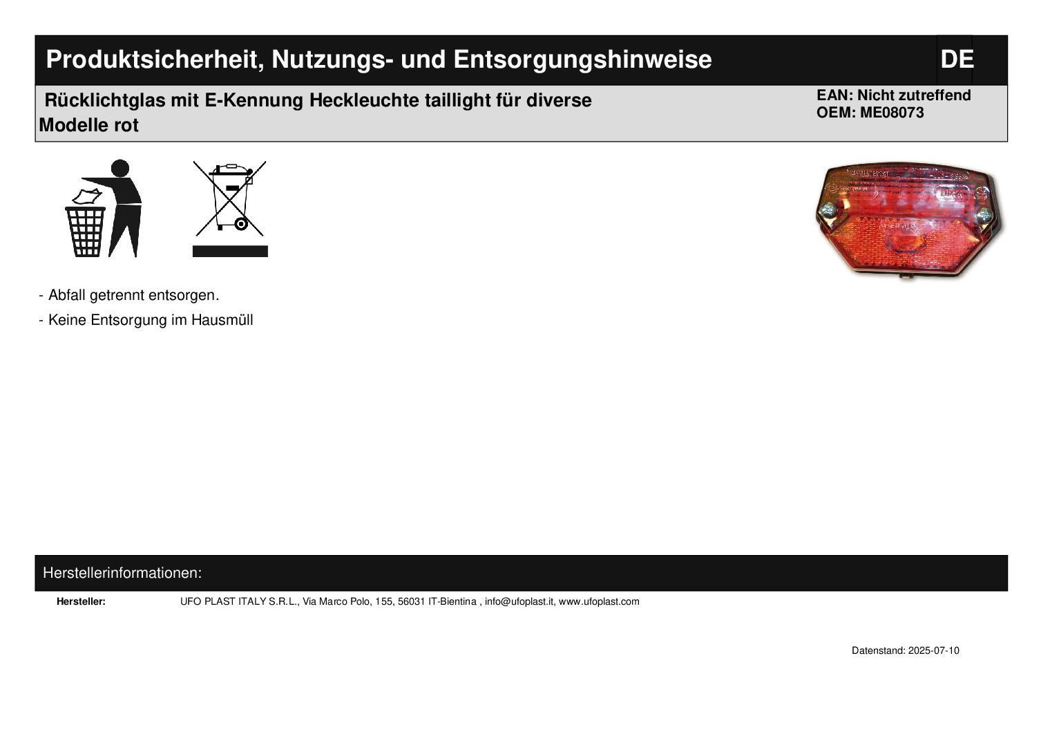 Rücklichtglas mit E-Kennung Heckleuchte taillight für diverse Modelle rot
