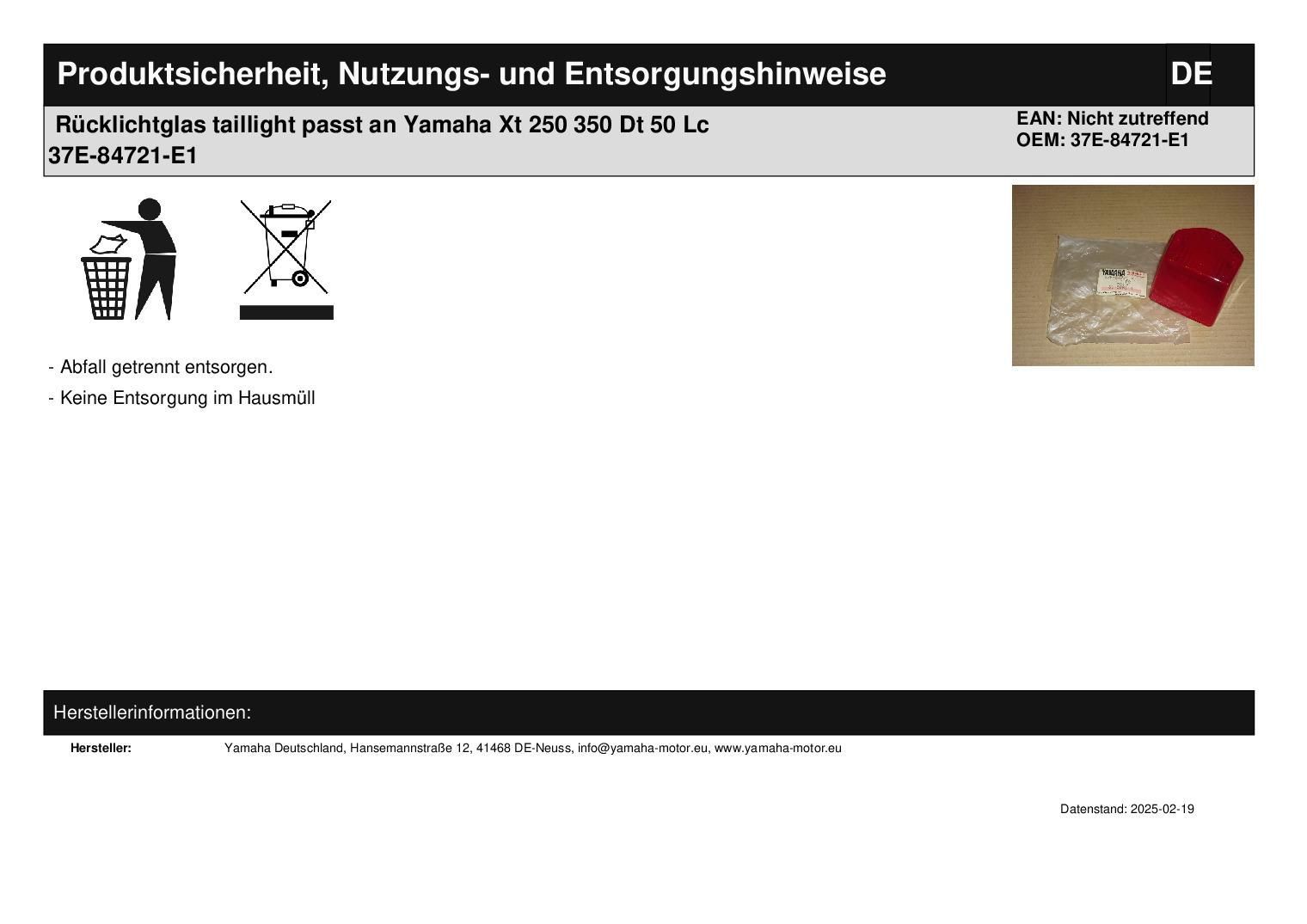 Rücklichtglas taillight passt an Yamaha Xt 250 350 Dt 50 Lc 37E-84721-E1
