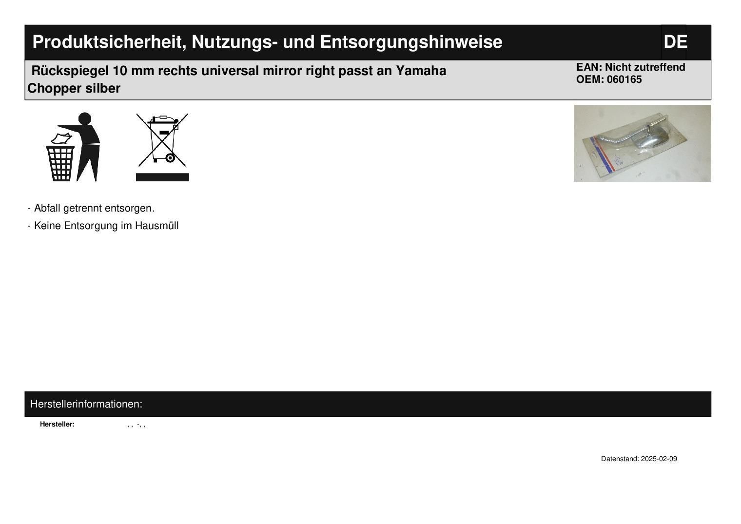 Rückspiegel 10 mm rechts universal mirror right passt an Yamaha Chopper silber