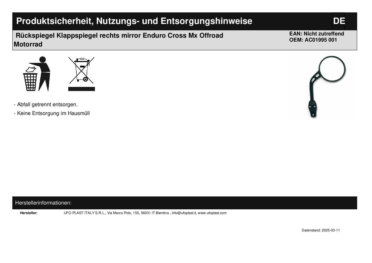 Rückspiegel Klappspiegel rechts mirror Enduro Cross Mx Offroad Motorrad