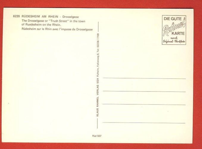Rüdesheim am Rhein Drosselgasse nicht gel. (1027) Siehe Bild Beschreibe meine Angebote nach besten Wissen und Gewissen. Der Artikel wird wie beschrieben von Privat verkauft, daher schließe ich eine Gewährleistung Garantie nach den geltenden EU Gewährleistungsrichtlinien für Gebrauchtwaren aus.Verkau