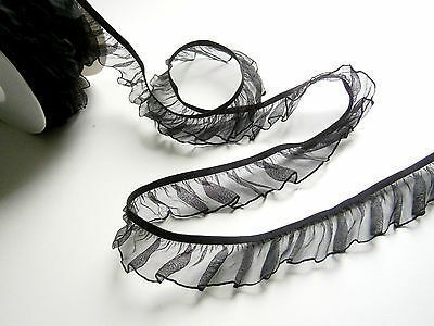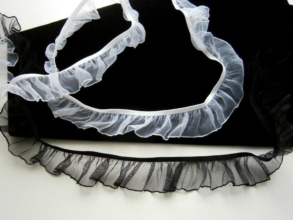 Rüschengummi, Gummiband, BORTE, SPITZE, BAND, Organza,27 mm, Weiß, Schwarz