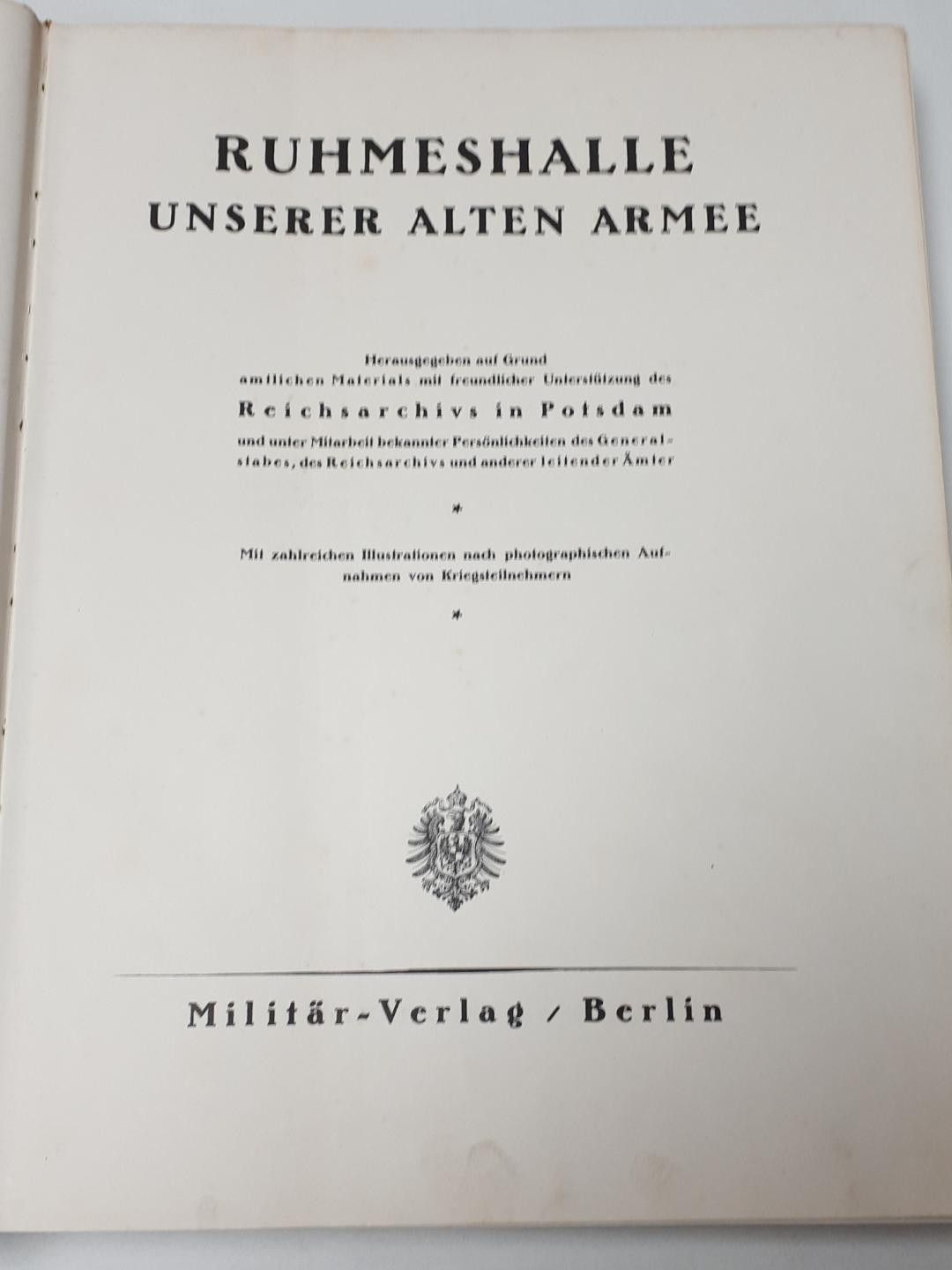 Ruhmeshalle unserer alten Armee R. 1.Abteilung: Regimenter unserer alten Armeebis Kriegsausbruch 2.Abteilung: Aufzählung sämtlicher Schlachten und Gefechte des Weltkrieges 3.Abteilung: Schilderung der wichtigsten Kriegshandlungen bis zum Weltkrieg * Militär Verlag 1927 * 467 Seiten Zustand: gut - gebraucht mit kleinen Gebrauchsspuren (Namensbeschriftung kommt vor sowie Bräunungsspuren, geknickte Seiten und kleine Verschmutzungen)