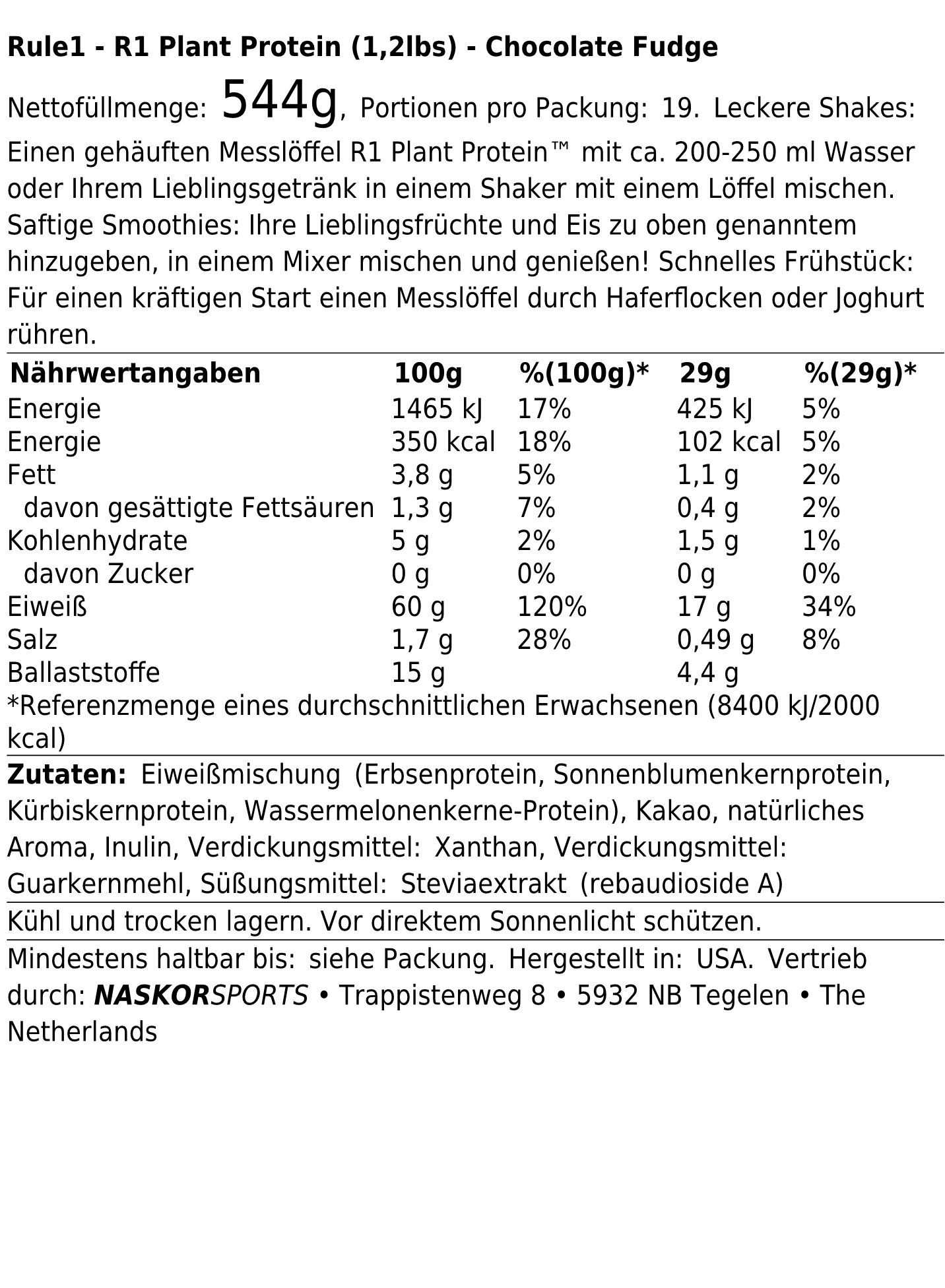 Rule1 R1 Plant Protein (1.2lbs) Chocolate Fudge