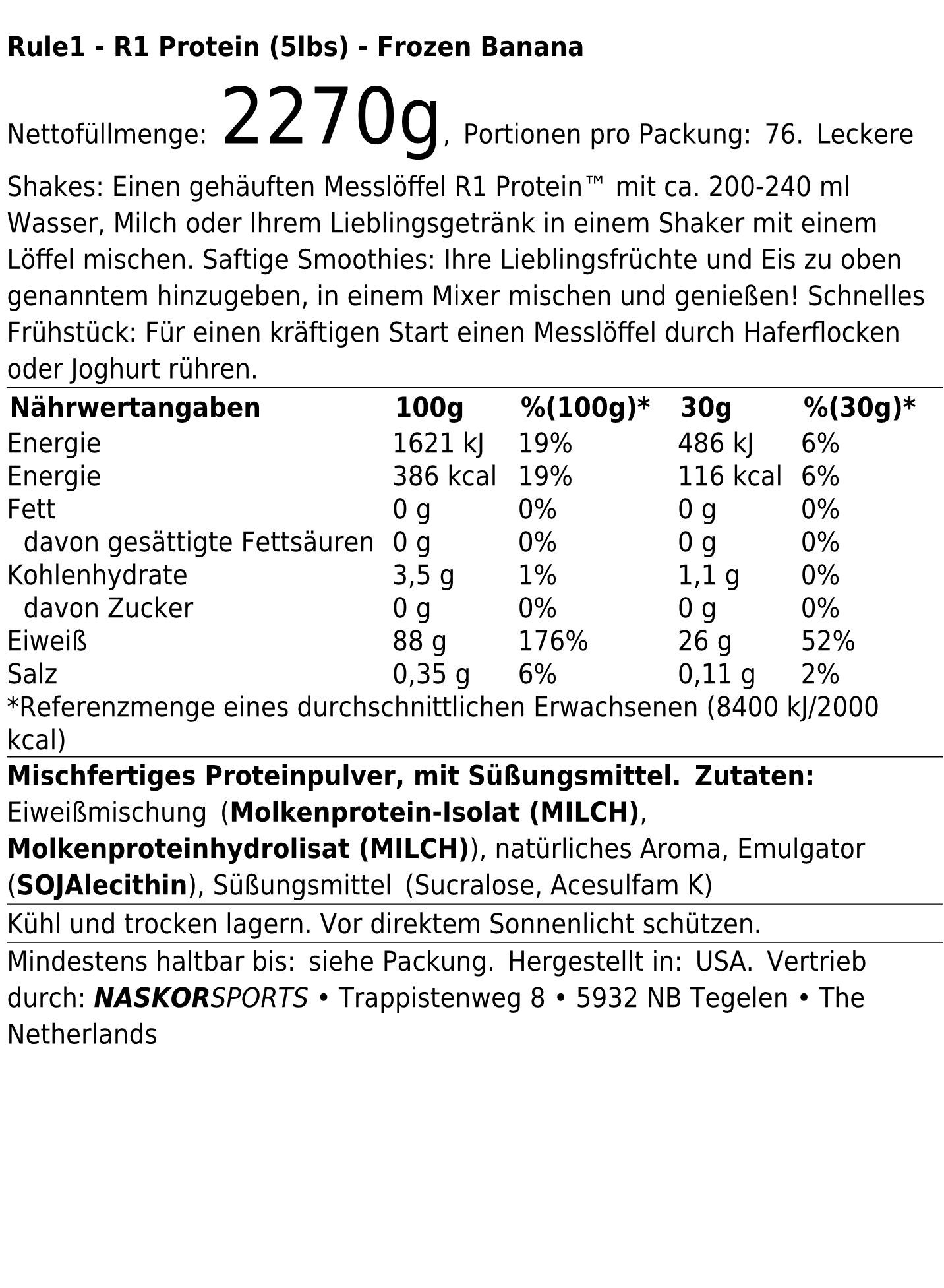 Rule1 R1 Protein Whey Isolate (5lbs) Banana Crème