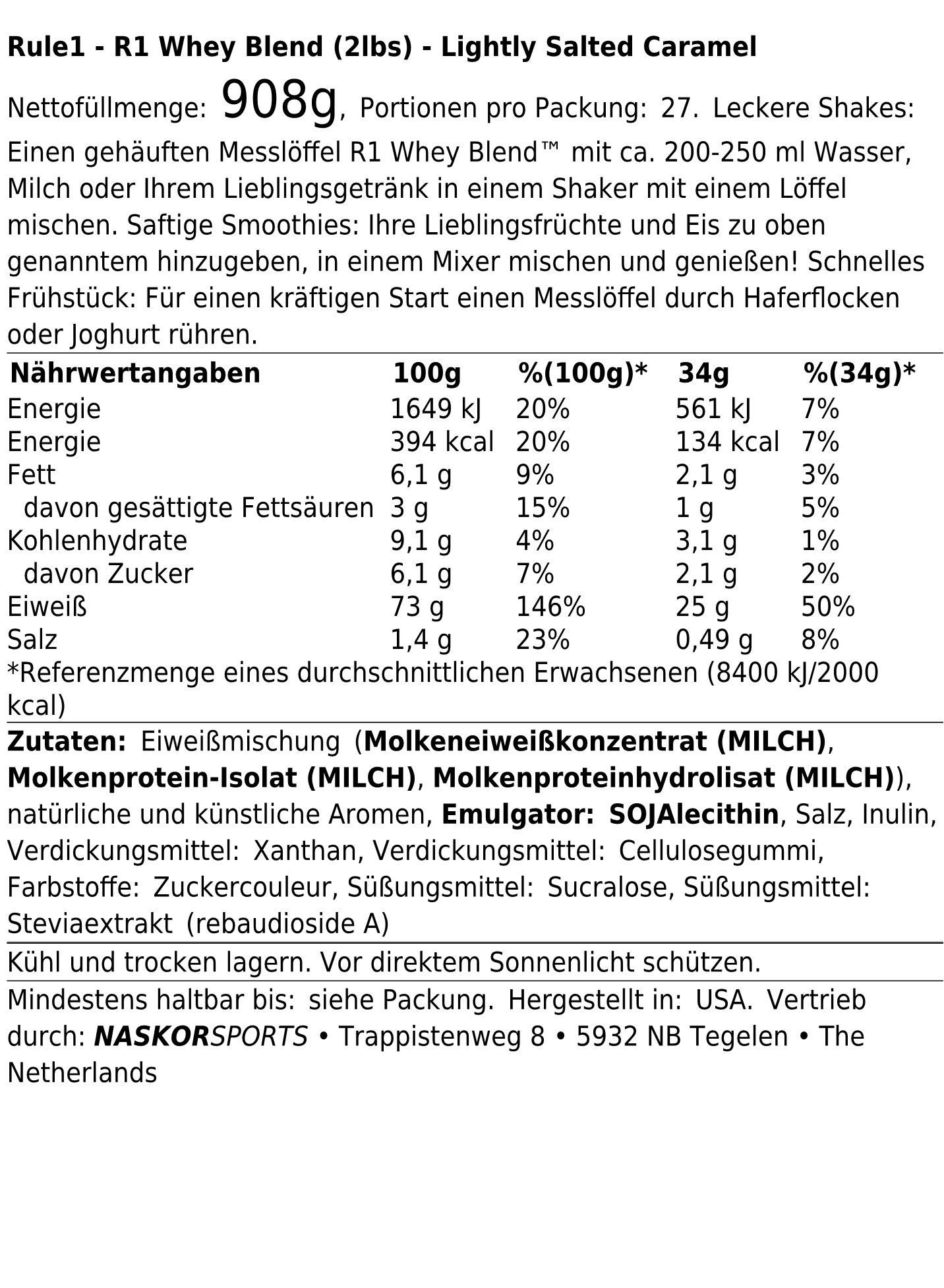 Rule1 R1 Whey Protein (2lbs) Salted Caramel