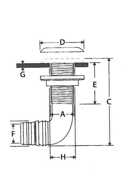 Rumpfdurchführung mit Winkelstück 90° Borddurchlass Borddurchführung