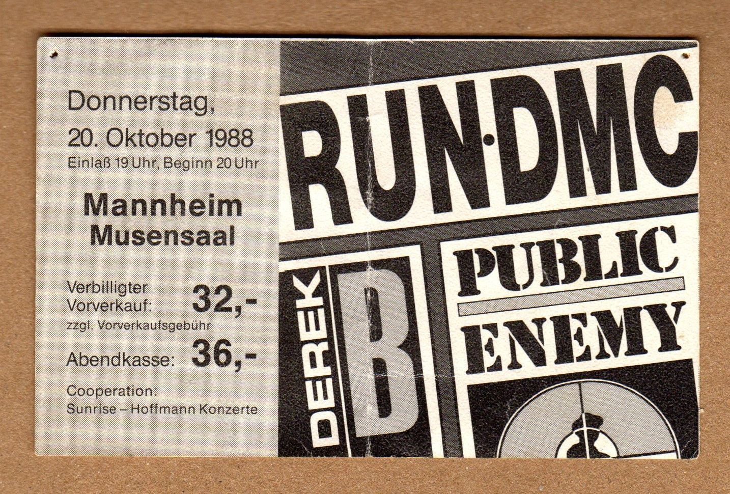 RUN DMC Puplic Enemy Derek B Eintrittskarte Konzertkarte Ticket 1988 Mannheim