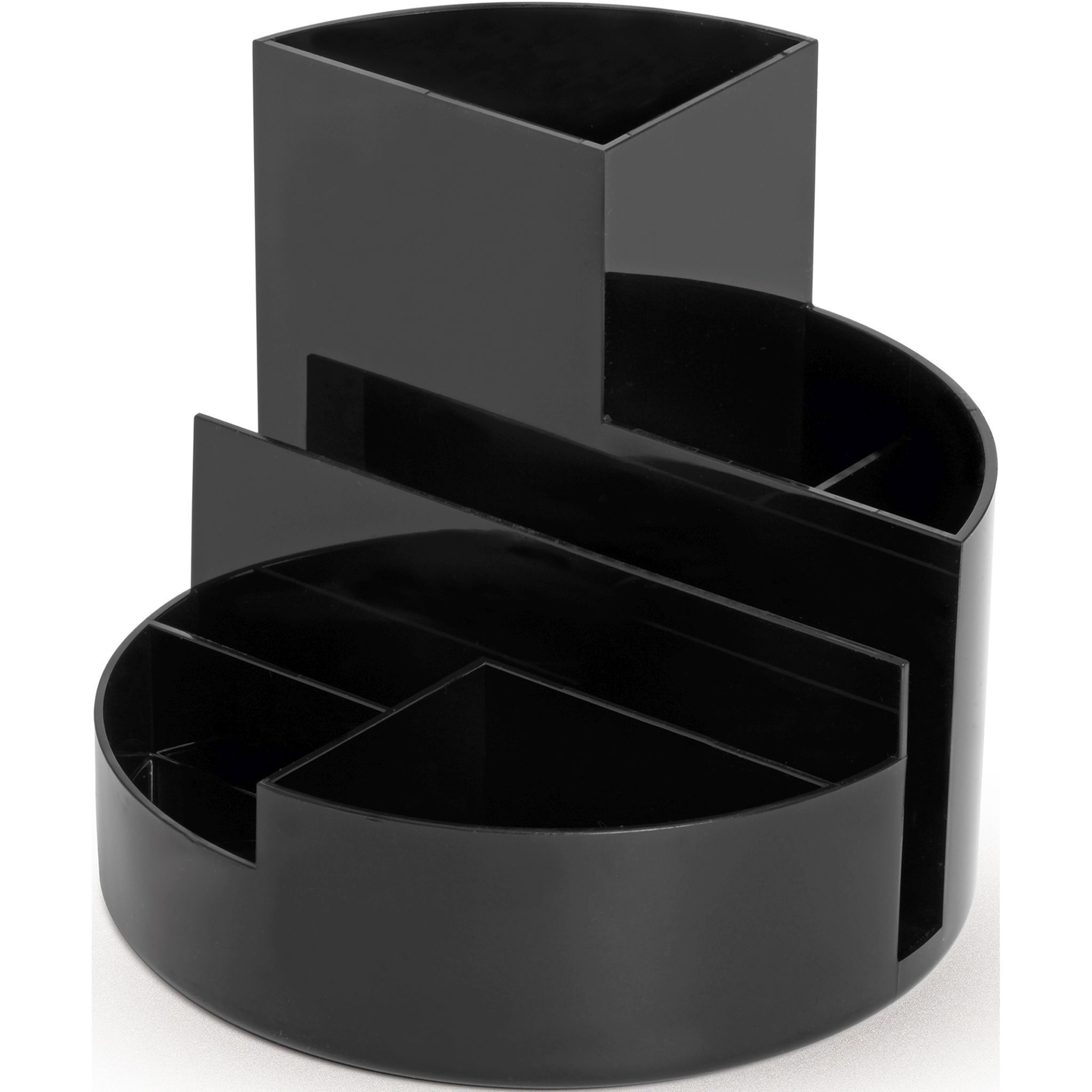 Maul Rundbox schwarz 6 Fächer m. Brief- und Zettelfach Ø 14cm, Höhe 12,5cm