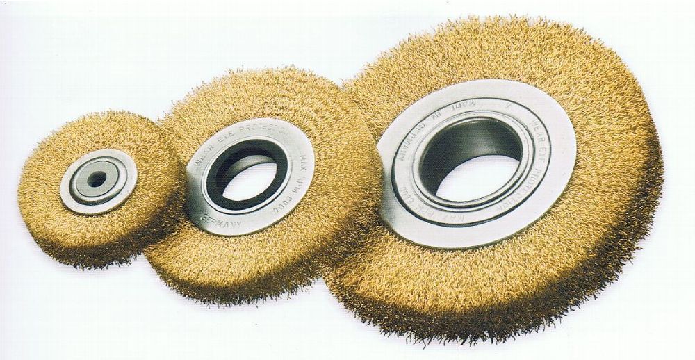 Rundbürste D 150 x Loch 40 x 0,3 Messing, für Schleifböcke, mit Reduzierringen