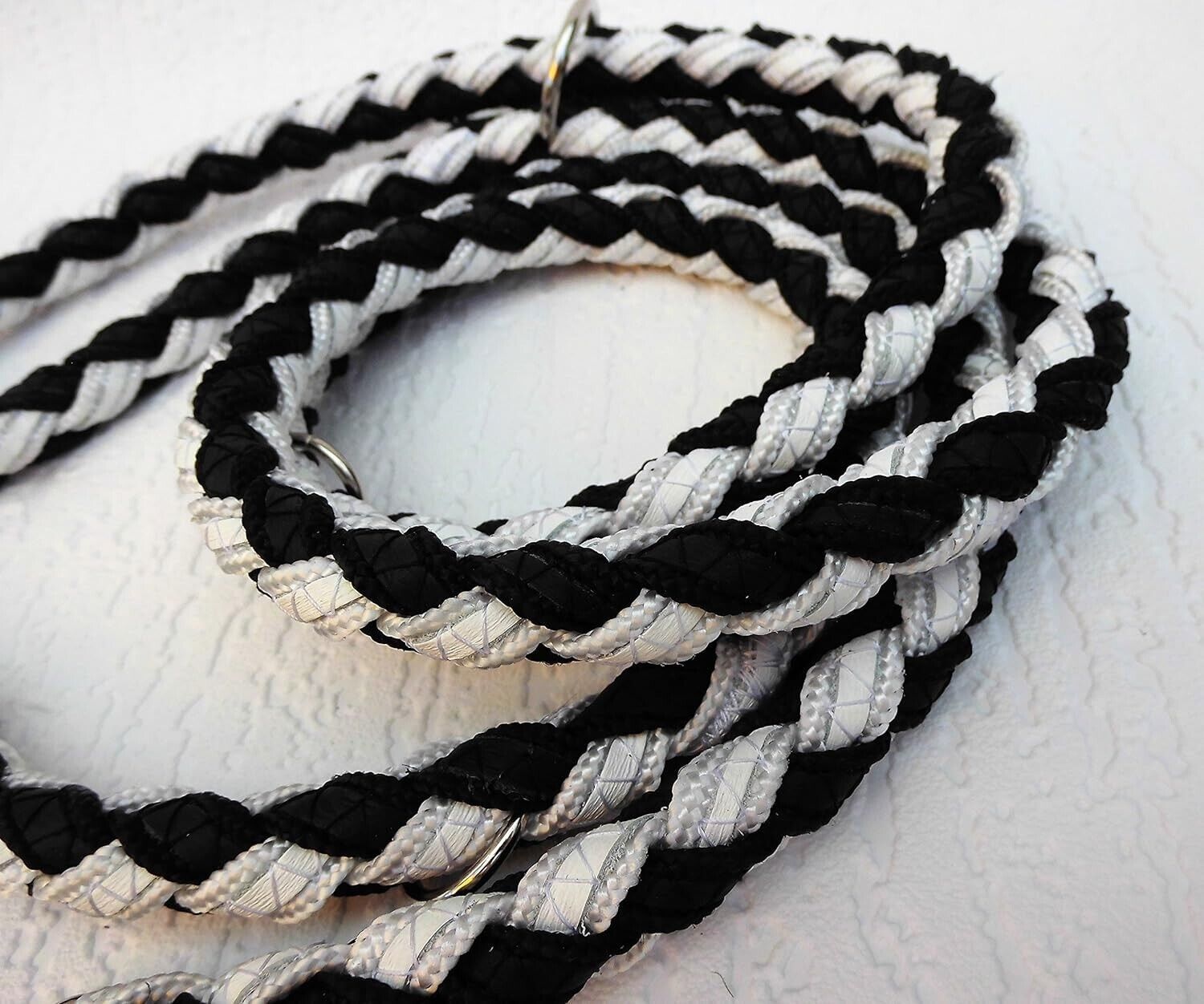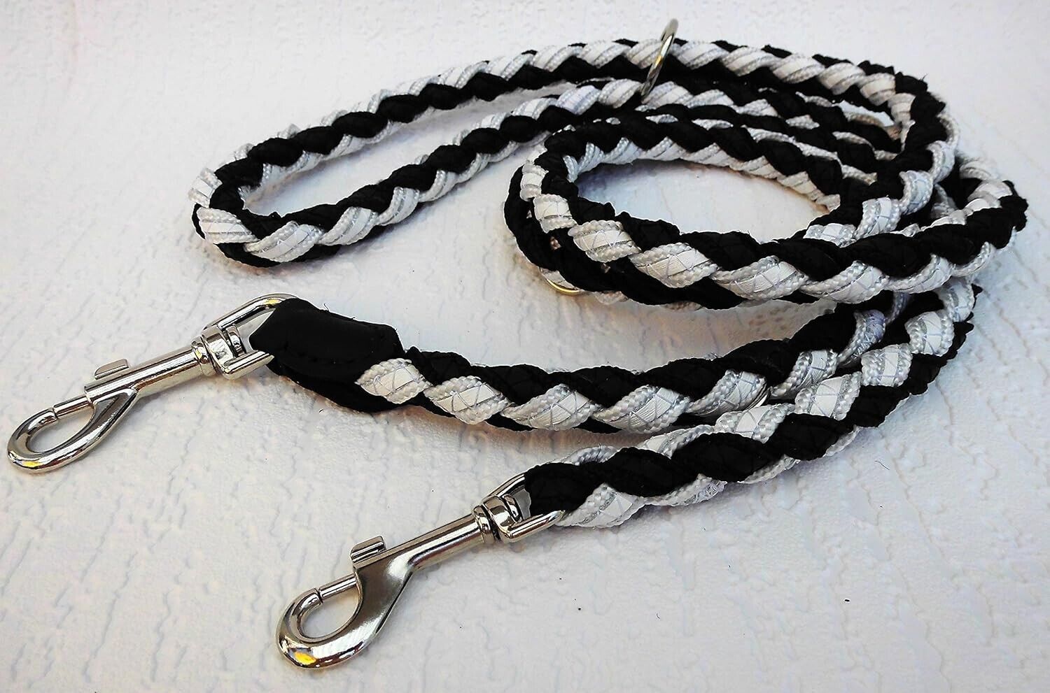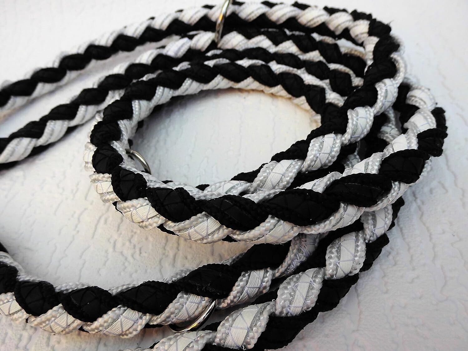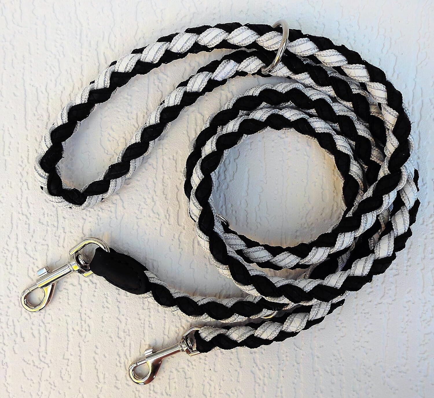 Runde Hundeleine geflochten, 200cm/16mm, 3xverstellbar Echt LEDER mit Weiß