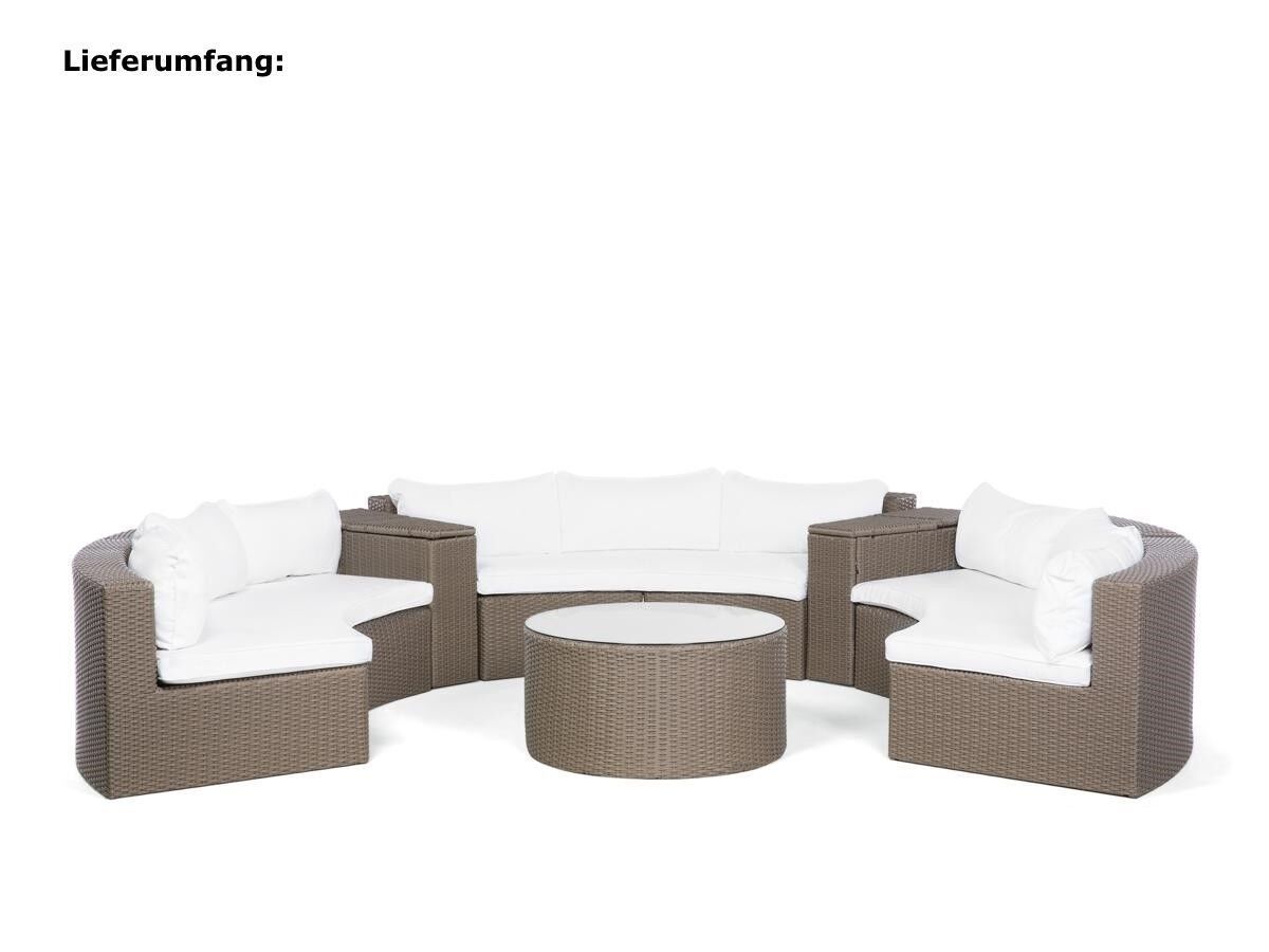 Runde Rattan Gartenmöbel Sydney Lounge braun weiß Sitzgarnitur rund Terrasse Garten
