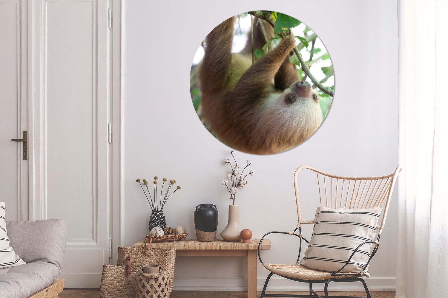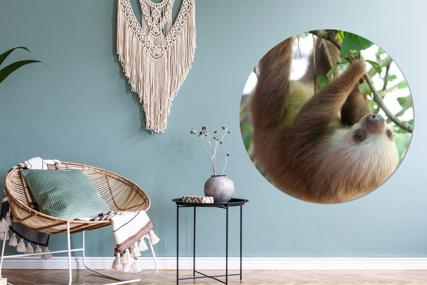 Runde Wandbilder - 120x120 cm - Baby-Faultier im Regenwald von Costa Rica