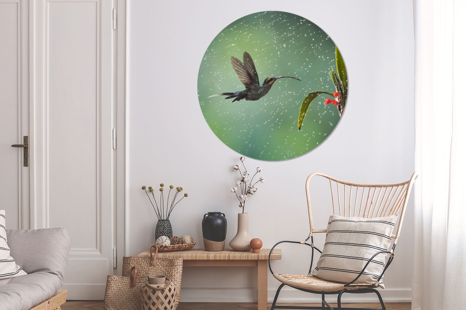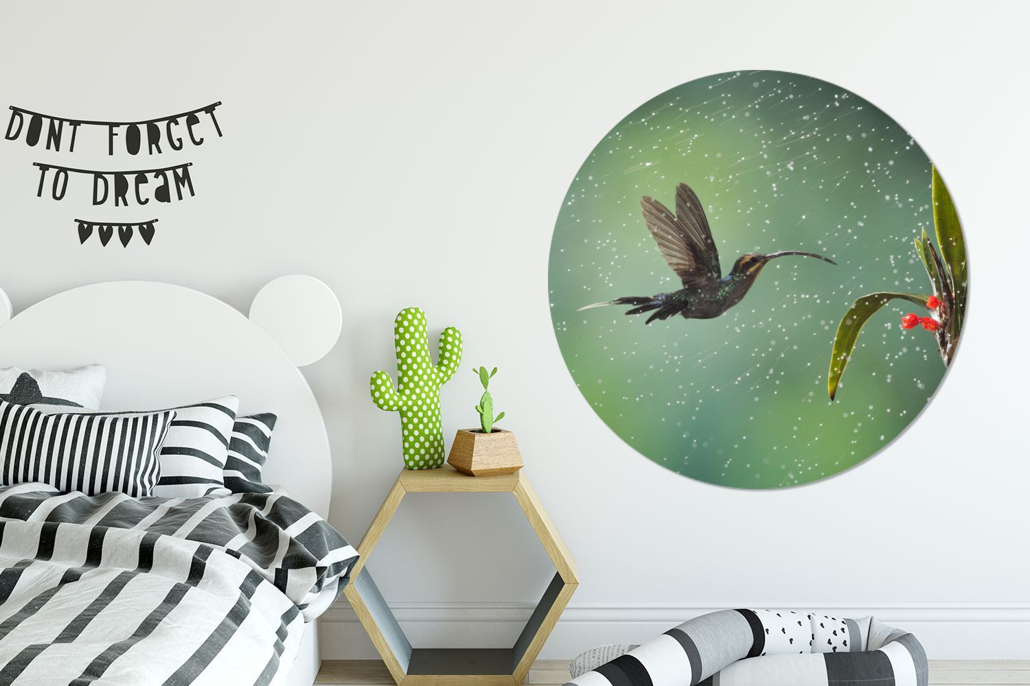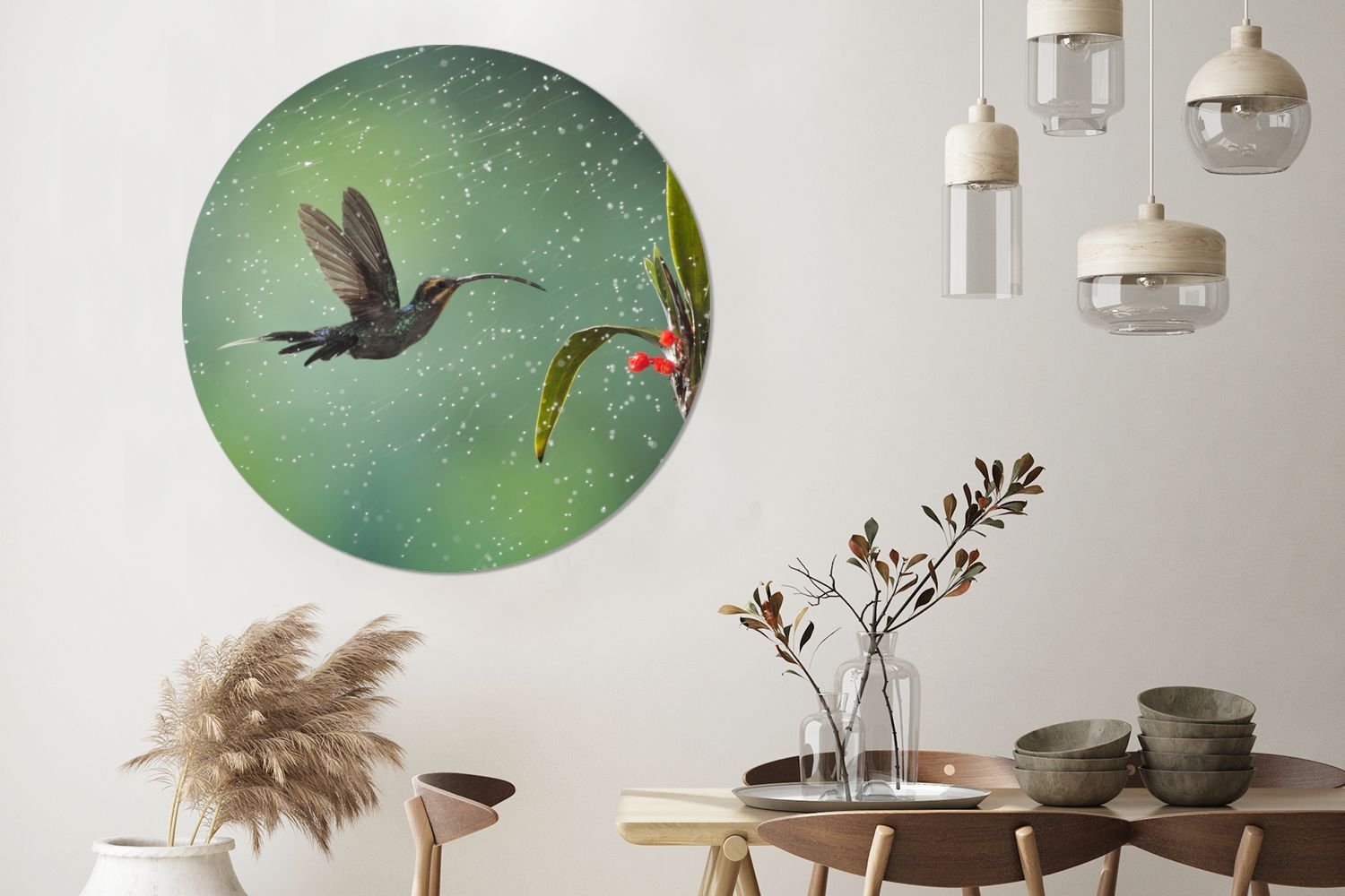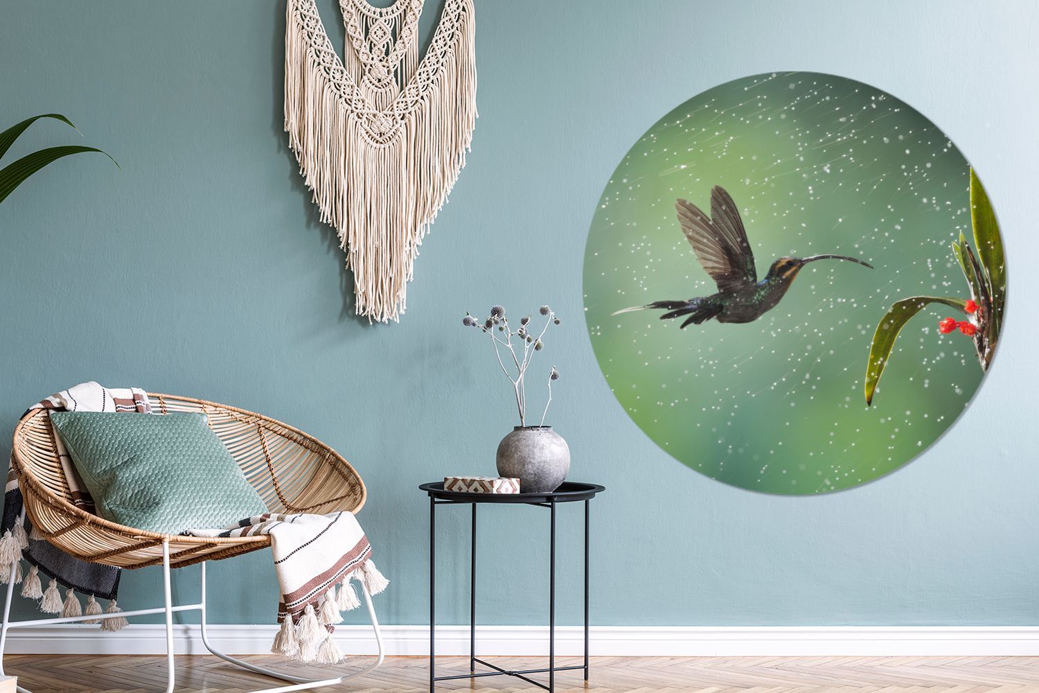 Runde Wandbilder - 120x120 cm - Kolibri im Regen in der Natur von Costa Rica