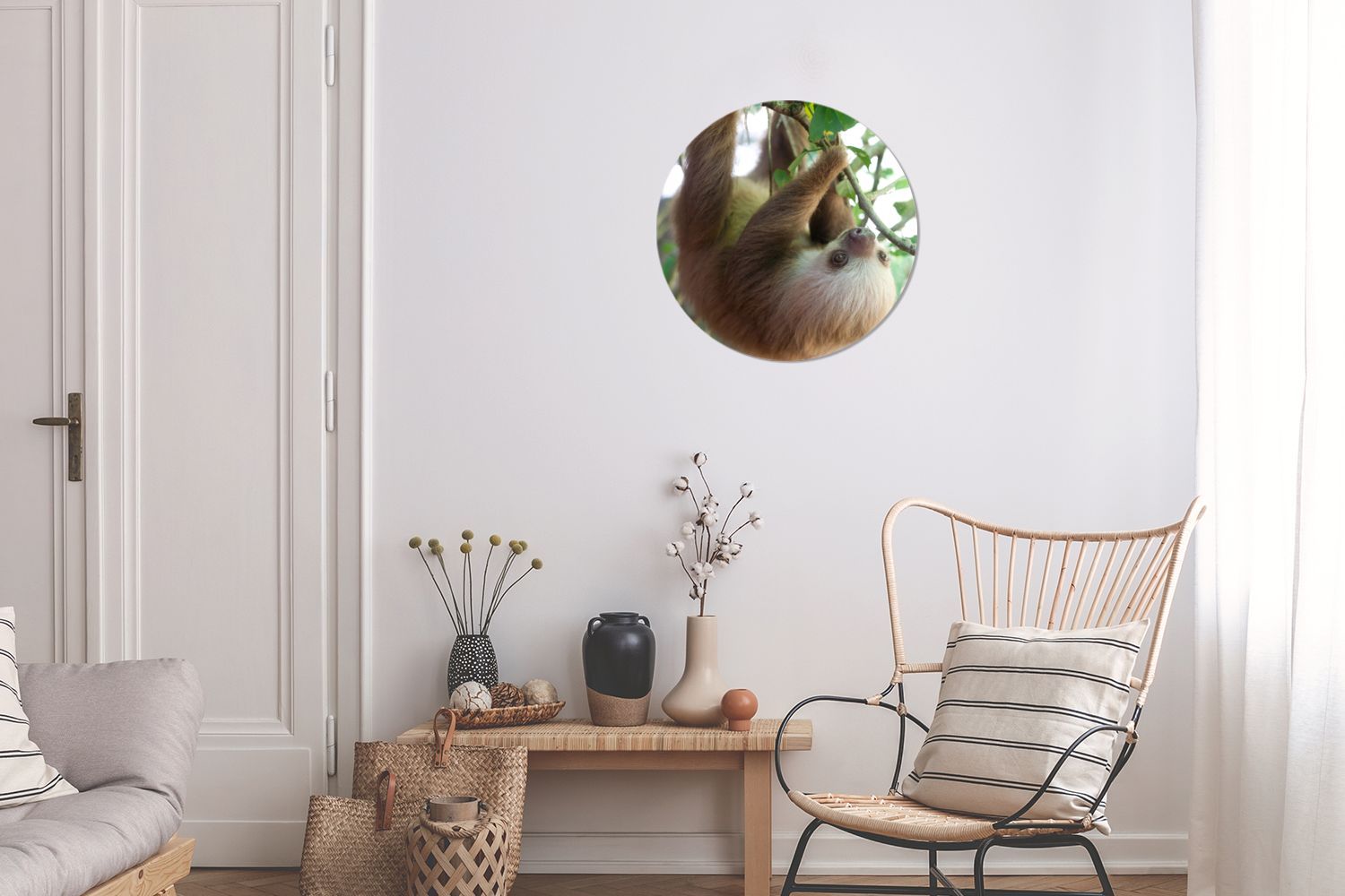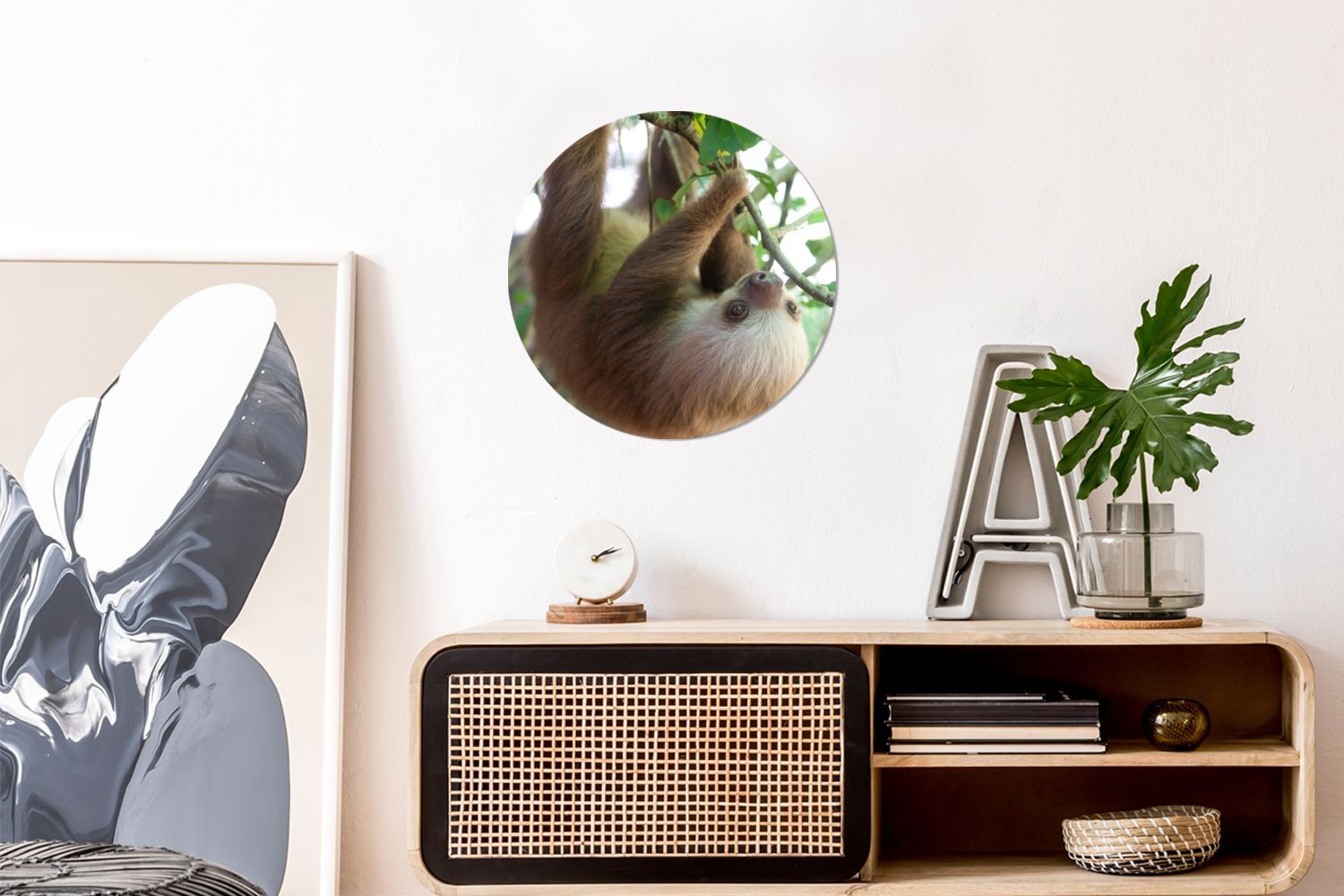 Runde Wandbilder - 30x30 cm - Baby-Faultier im Regenwald von Costa Rica