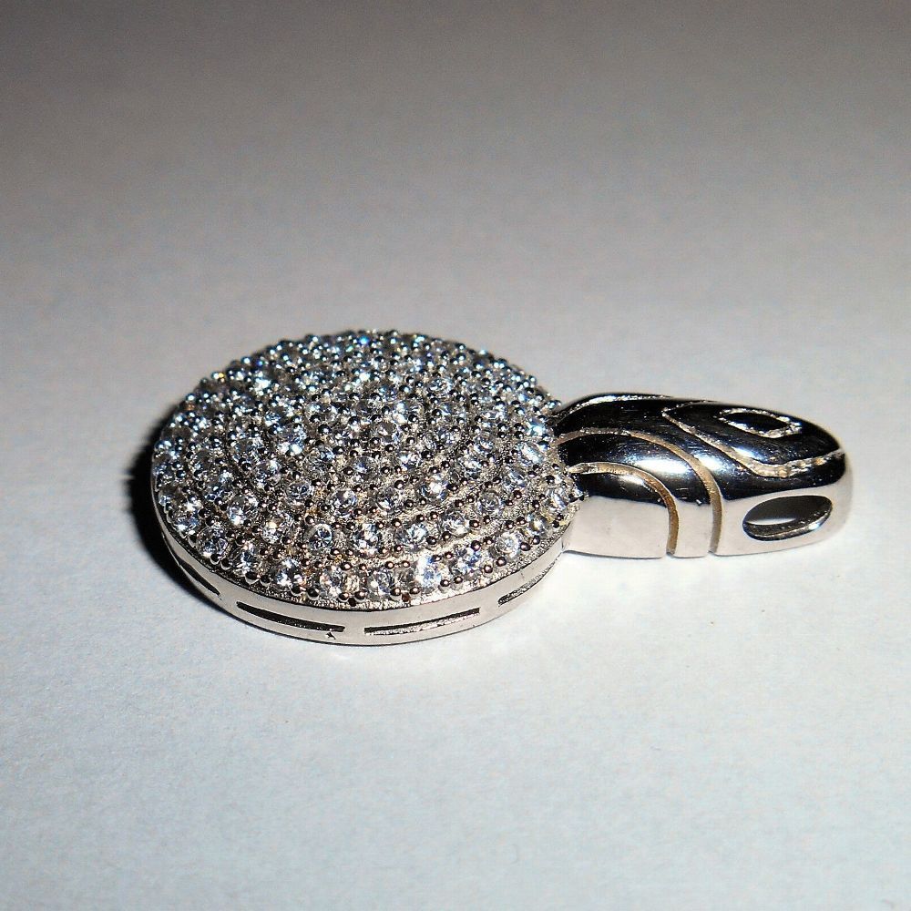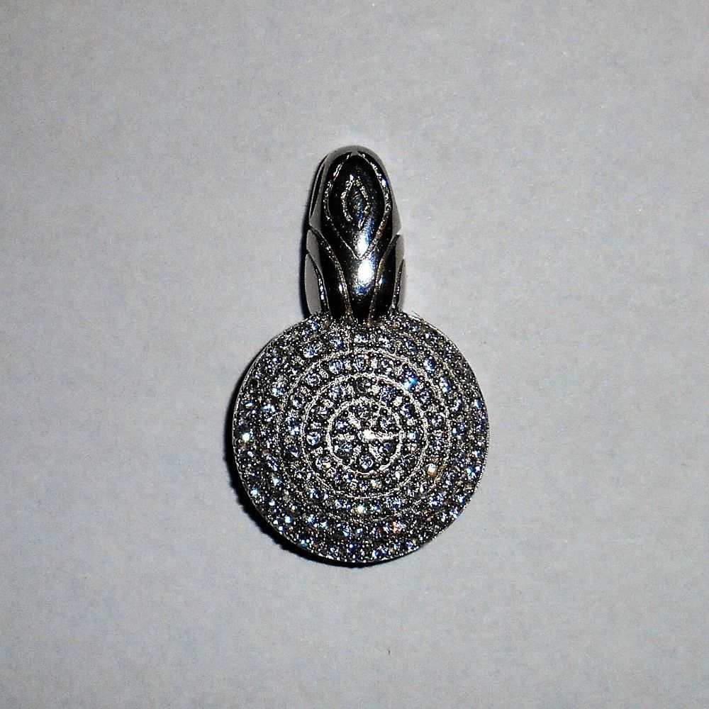 Runder Anhänger 925er Silber rhodiniert mit klaren Zirkonia besetzt Größe: 20 mm Ø Länge (total): 27 mm Gewicht: 3,7 g Hersteller: Guel Stein: Zirkonia Das Silber ist rhodiniert Neuware
