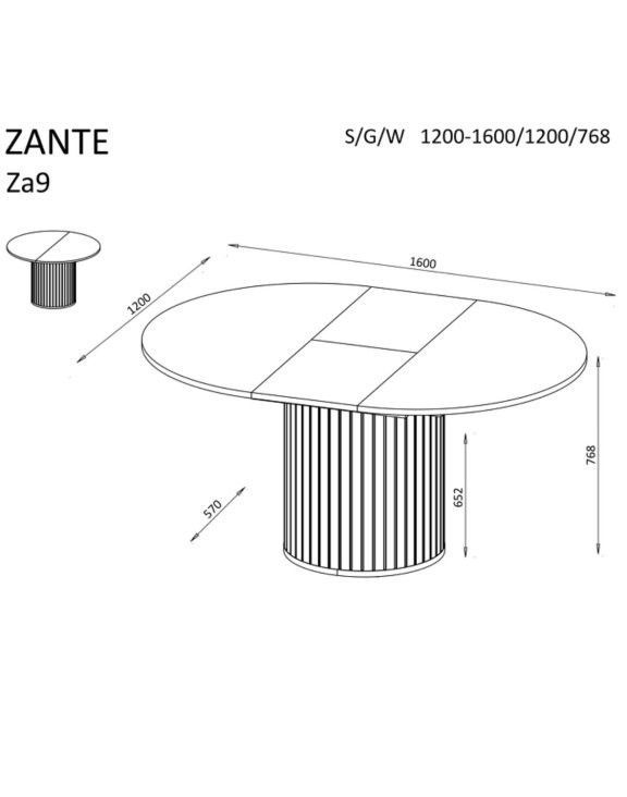 Runder, ausziehbarer Tisch ZANTE ZA9, 120-160 cm, geriffeltes Gestell