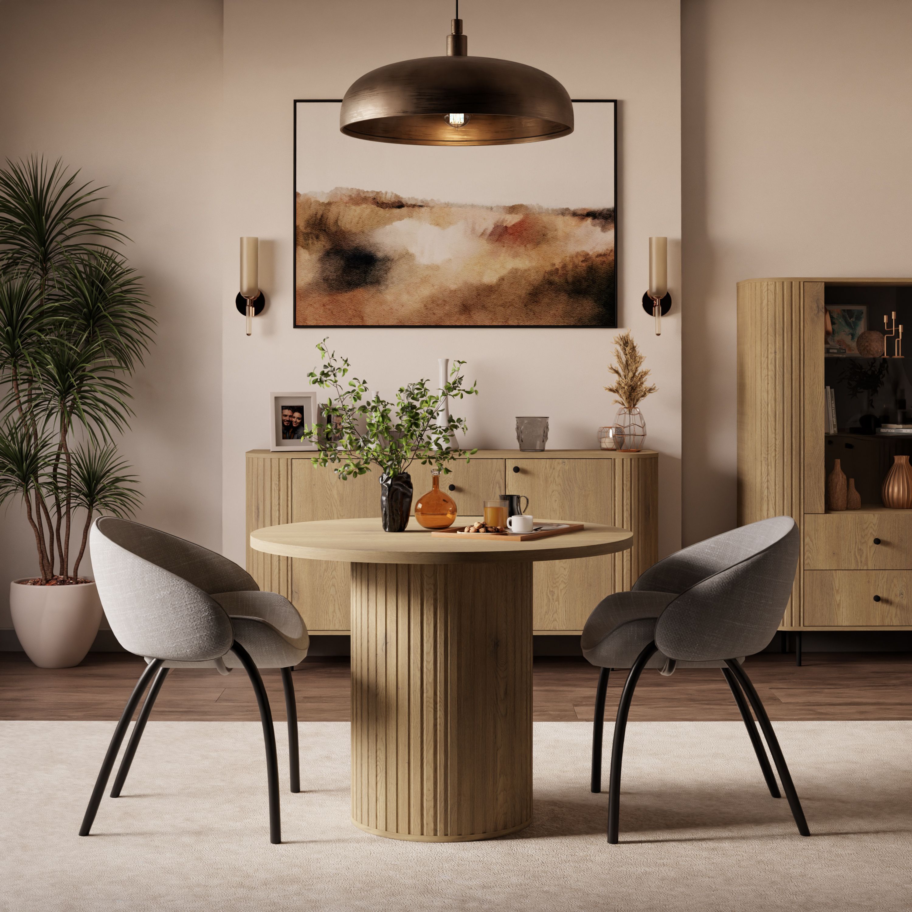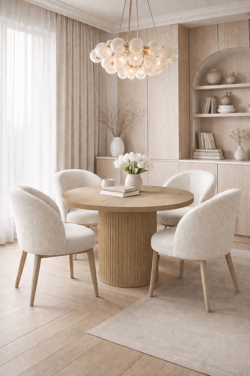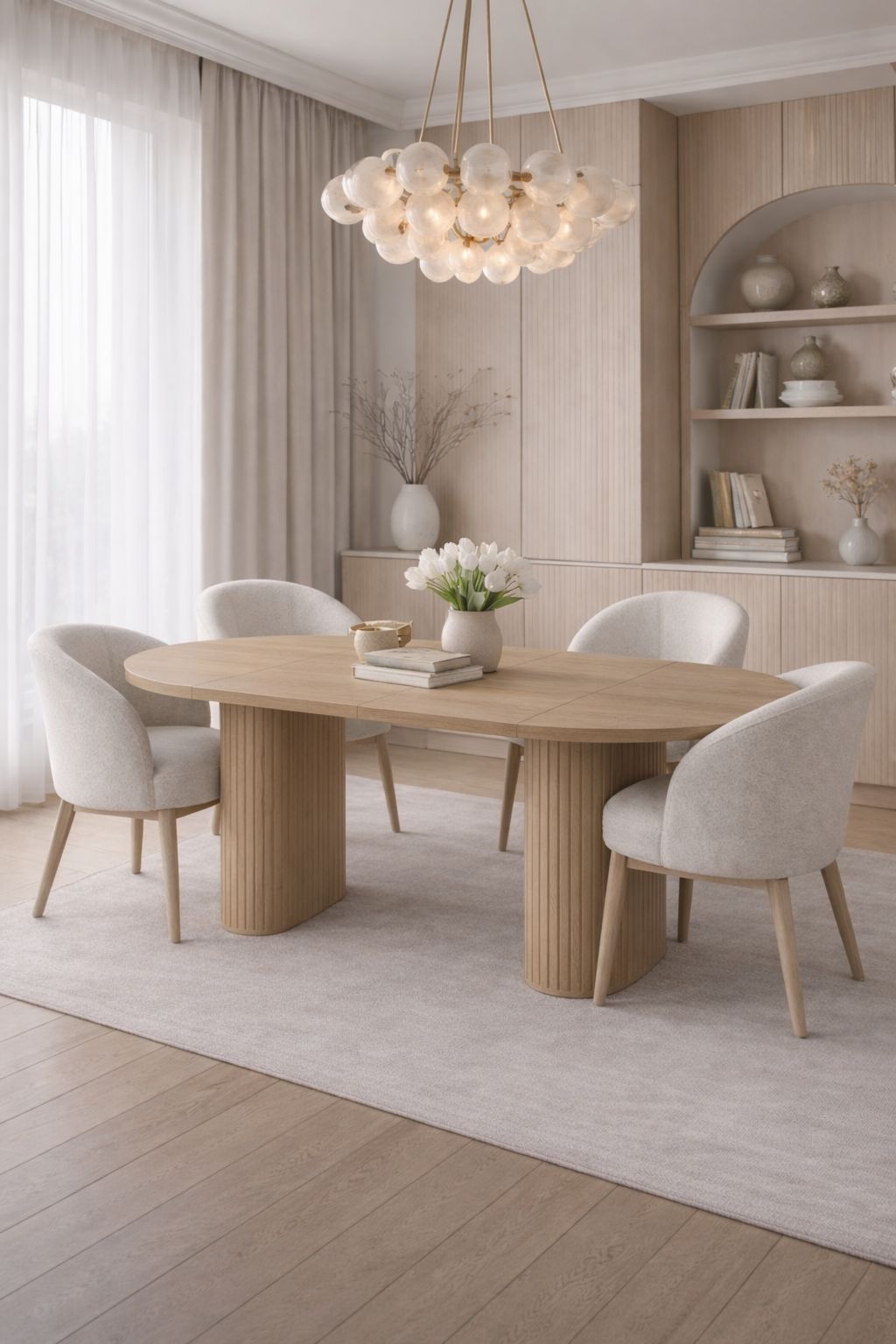 Runder Design-Esstisch ausziehbar Stabiler Lamellenfuß Modernes Wohnambiente