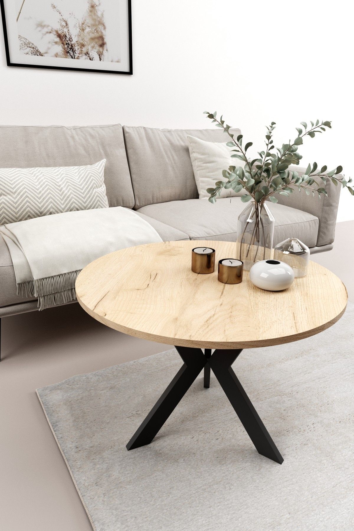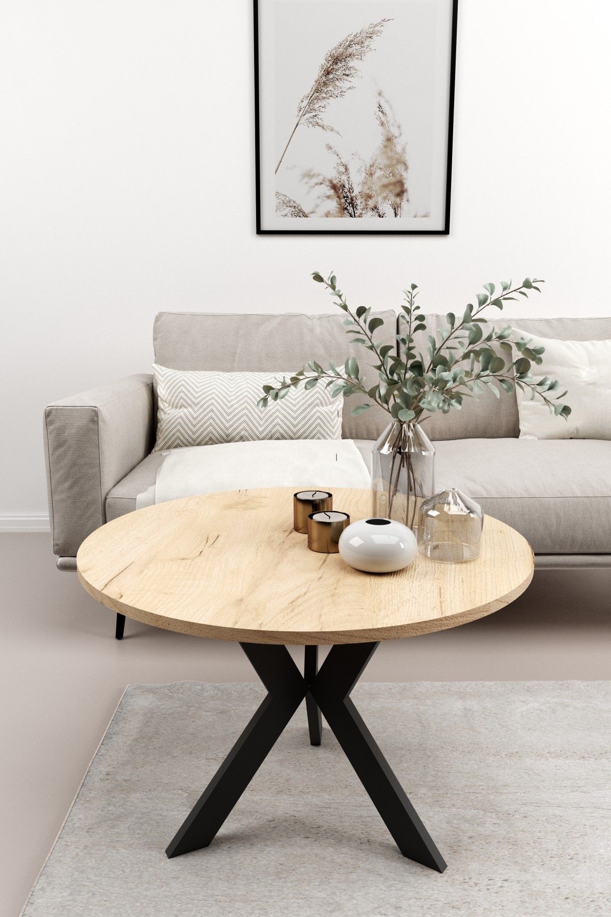 Runder Couchtisch PIA Sofatisch Kaffeetisch Wohnzimmer (schwarz und goldene Eiche)