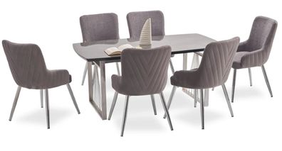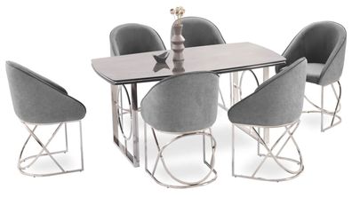 Essgruppe Esszimmermöbel Essecke Esstisch Esstisch Stühle 6tlg Grau