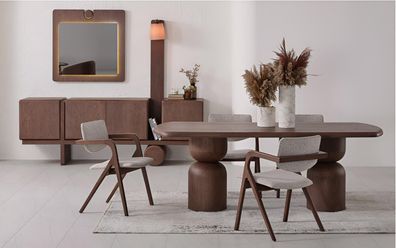 Braun Esszimmergarnitur Esstisch aus Holz weiche Stühle Designermöbel