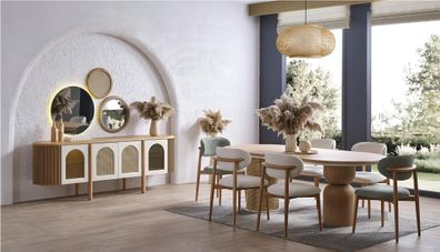 Esstisch mit Stühlen Buffet und Spiegel im modernen Design luxuriöse Möbel