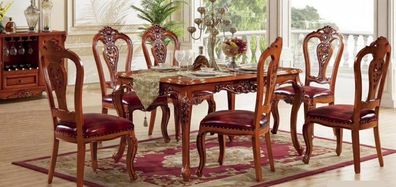 Stilvolle Klassische Esszimmergarnitur Robuster Esstisch 6x Stühle