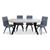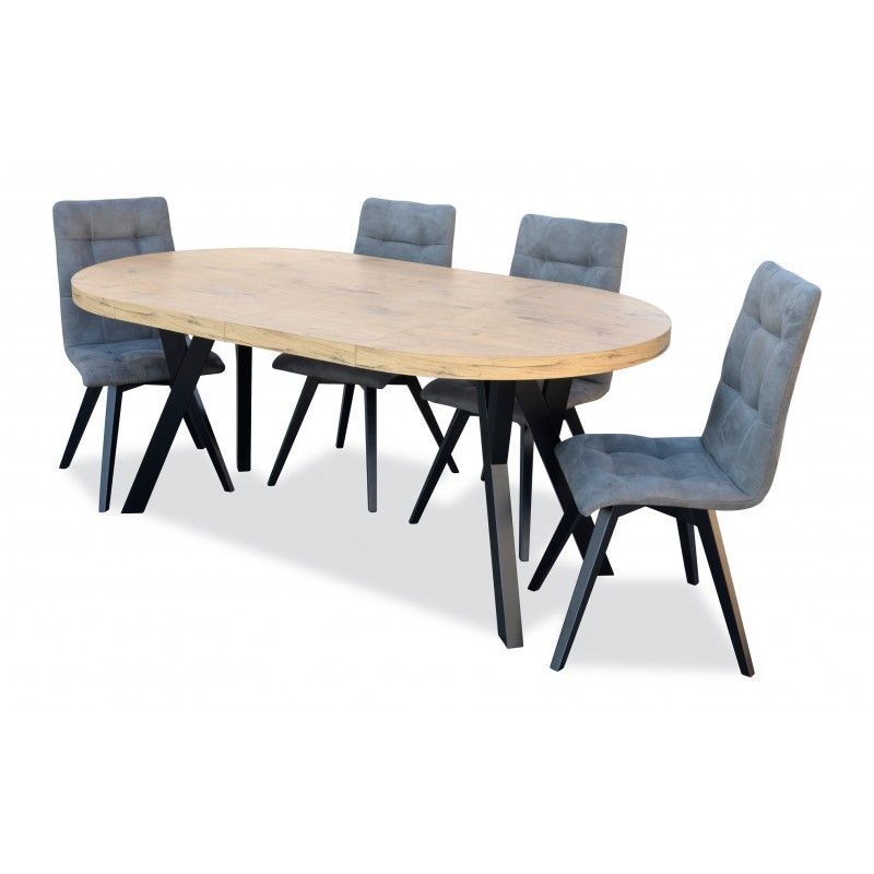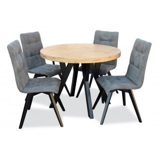 Ein stilvolles Esszimmermöbel-Set mit einem runden Tisch und vier elegant gesteppten, gepolsterten Stühlen. Dieses Set ist ideal für kleinere Räume und verbindet moderne Ästhetik mit Komfort. Der runde Tisch sorgt für eine optimale Raumausnutzung, während die bequemen Stühle mit weicher Polsterung der Einrichtung einen luxuriösen Touch verleihen.