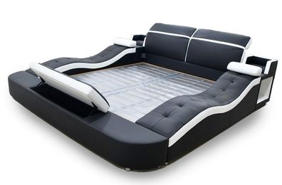 • Bett Doppel Regale Leder Polster Betten Multifunktion Mit Massagefunktion Neu