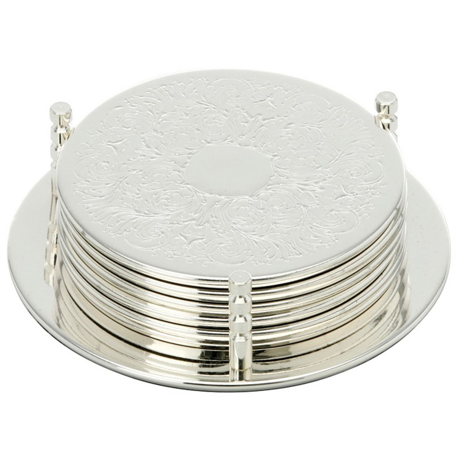 rundes verziertes versilbertes Glas-Untersetzer Set 7-teilig