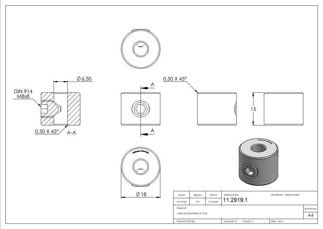 Rundklemme mit Madenschraube für Seil 5-6 mm V4A