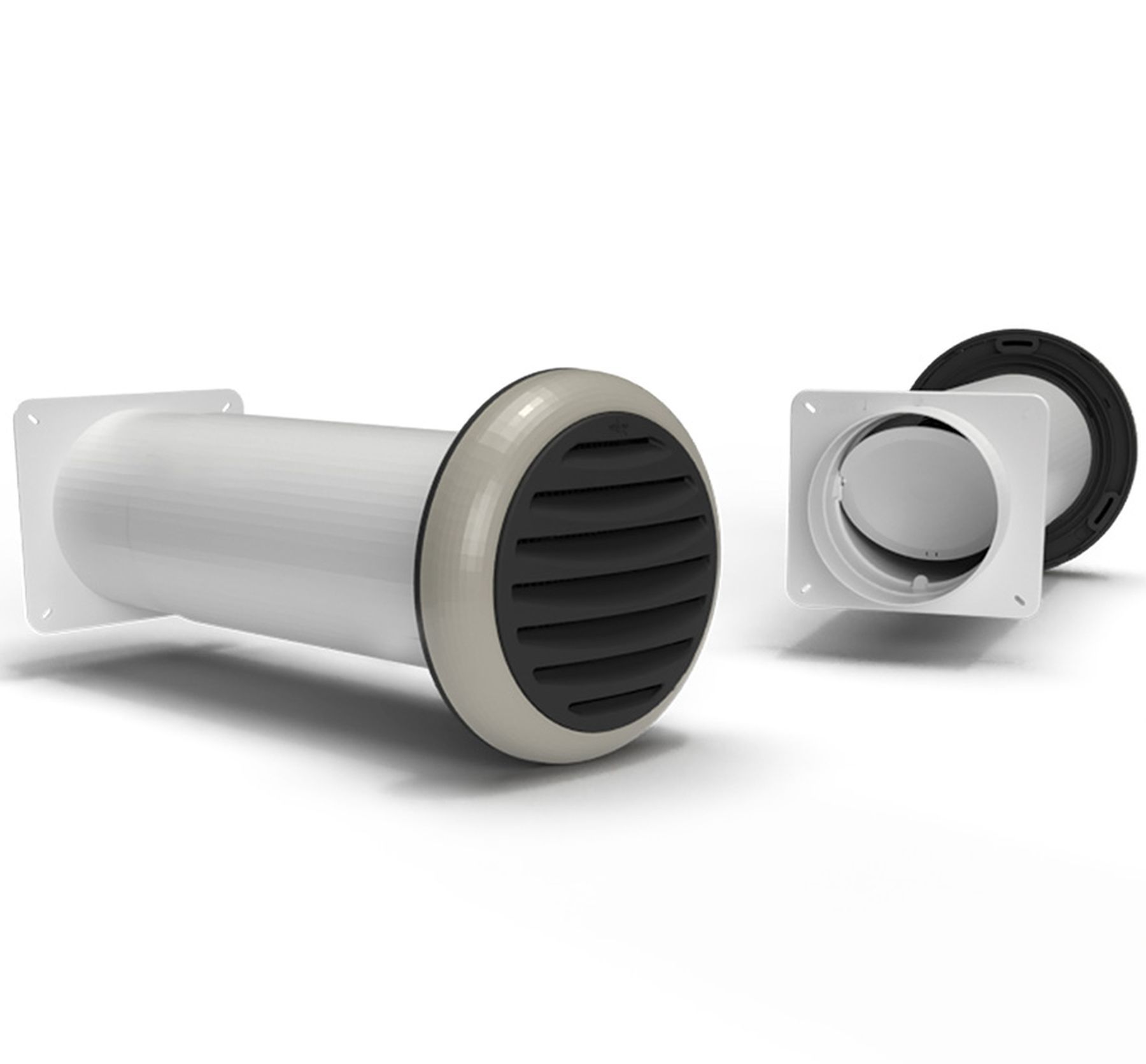 Rundrohr Ø 150mm Teleskop-Mauerkasten 35-68cm Blower-Door Rückstauklappe Abluft