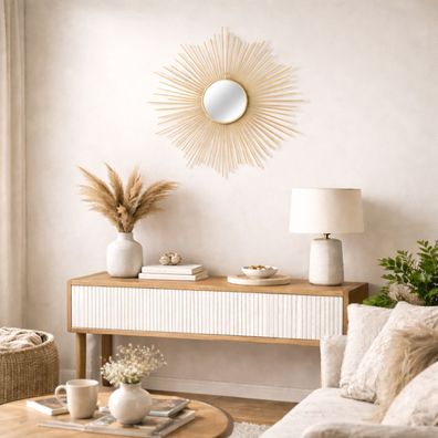 Wandspiegel Dekospiegel Rundspiegel Hängespiegel Spiegel Sonne Metall Gold Ø65cm