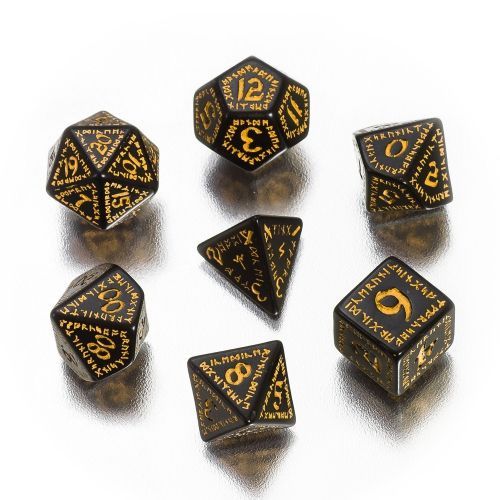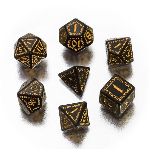 Q-Workshop Runic Würfel - 7 Stück - schwarz und gelb
