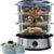 3 spülmaschinengeeignete Dampfgarbehälter (insgesamt 9,0 l Fassungsvermögen), 6 Eierhalter pro Dampfgarbehälter, Reisschale (1,0 l) 60-Minuten-Timer mit automatischer Abschaltung, Trockengehschutz, 800 Watt 2 seitliche Wassereinfüllöffnungen für einfaches Befüllen während des Betriebs, Frontale Wass