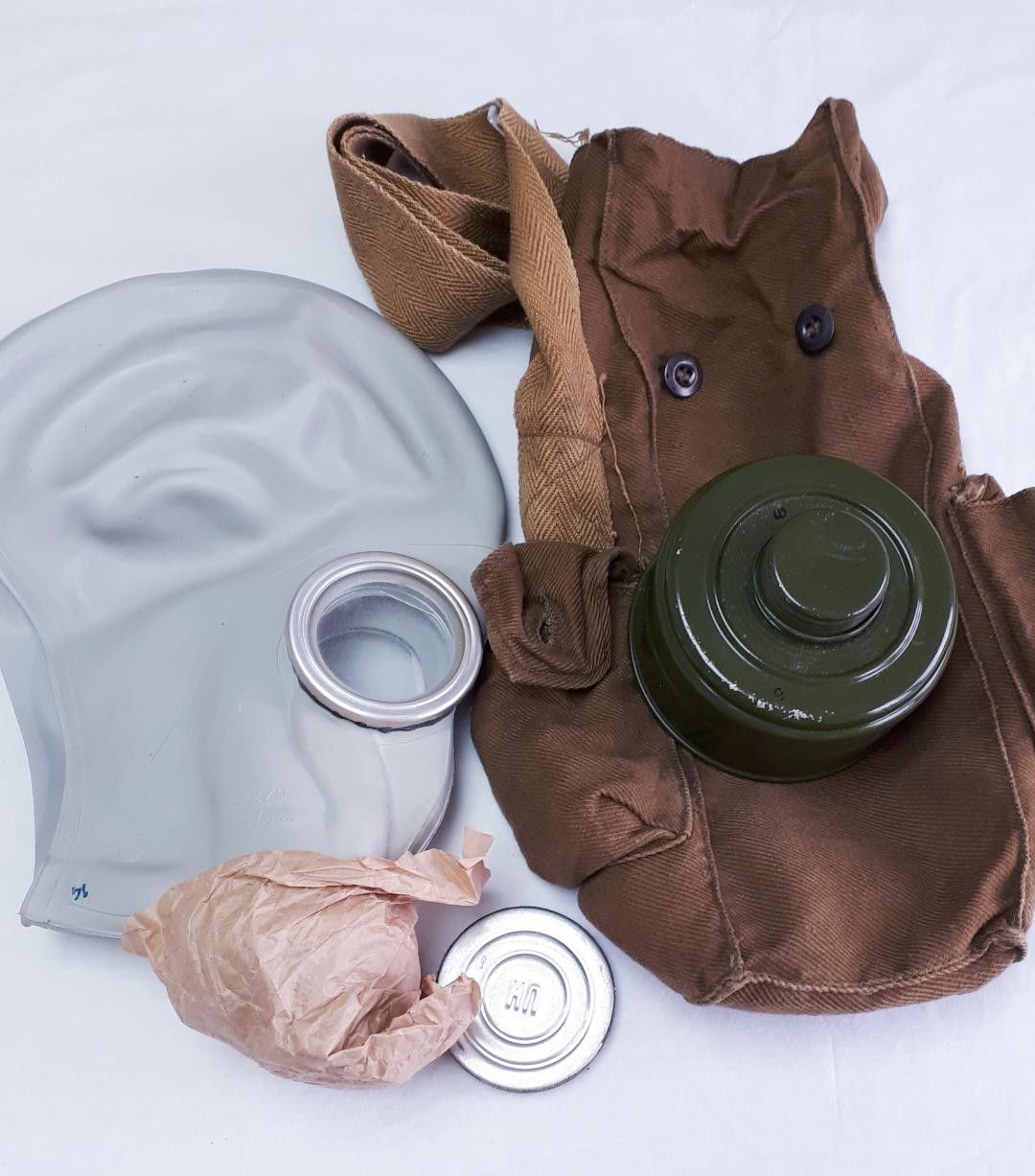 Russische Gasmaske GP 5 mit Filter, Augenglas im Stoffbeutel
